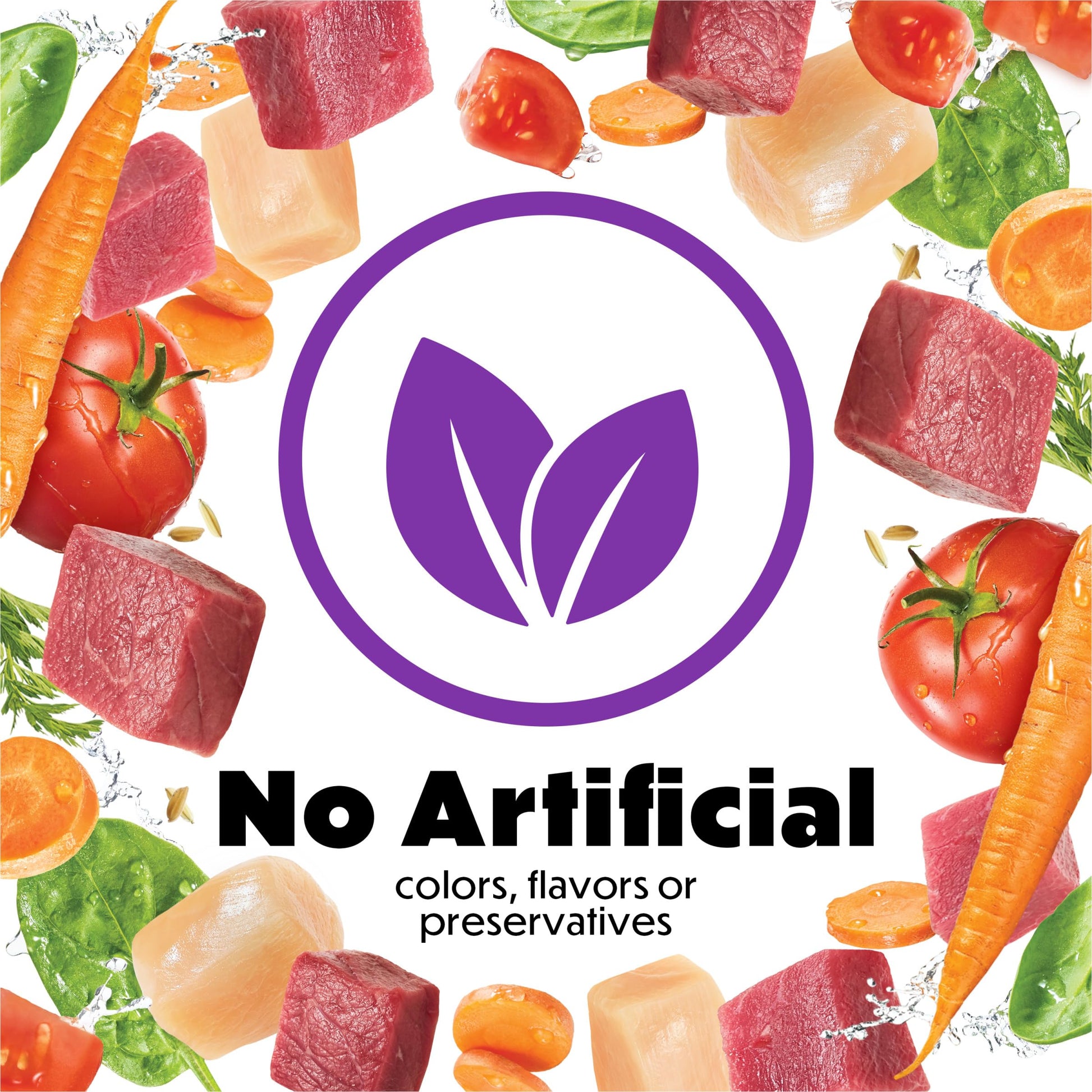 - High protein dog food helps support strong muscles and contains no artificial colors, flavors or preservatives