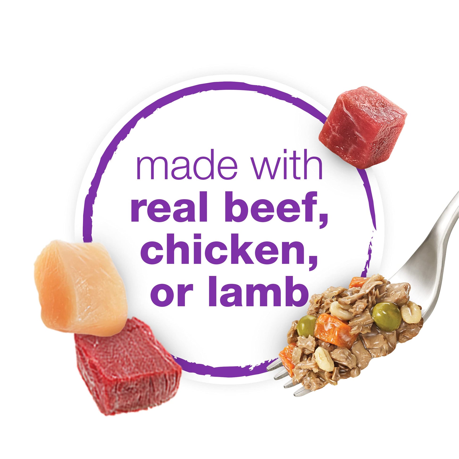 - 12-count Beneful Chopped Blends dog food variety pack is made with real chicken, beef or lamb and inclusions of real vegetables and grains you can see
