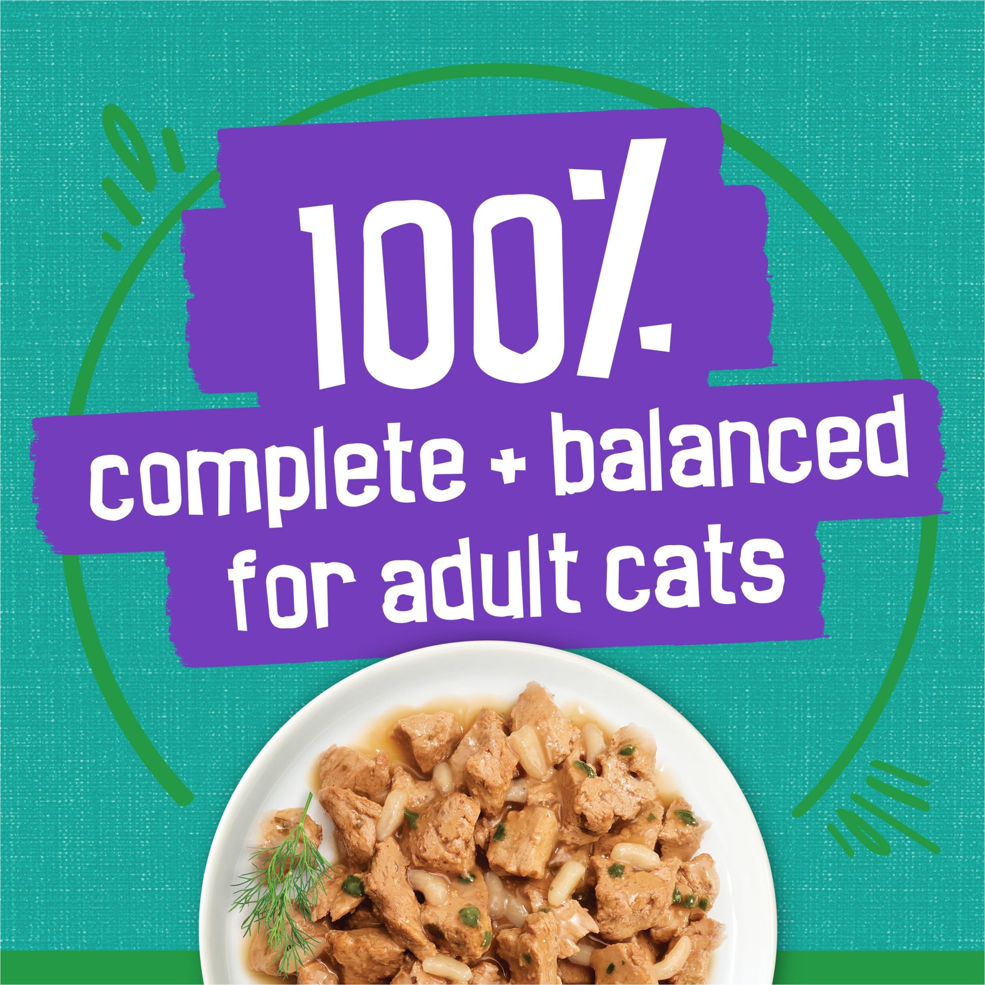 Adult cat food that can be served as a standalone meal or combined with Friskies Indoor Delights dry cat food