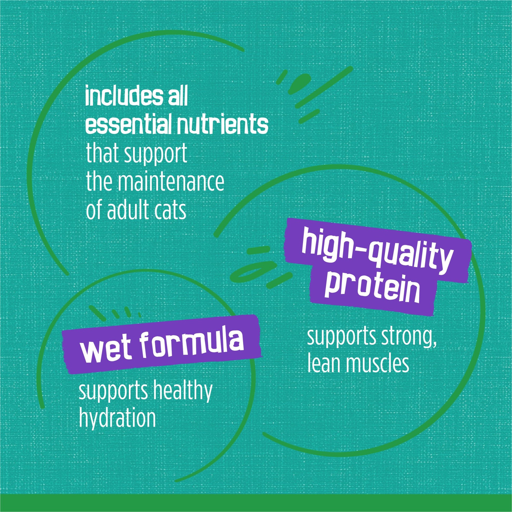 Wet food for cats in a recyclable can and manufactured in Purina-owned U.S. facilities.