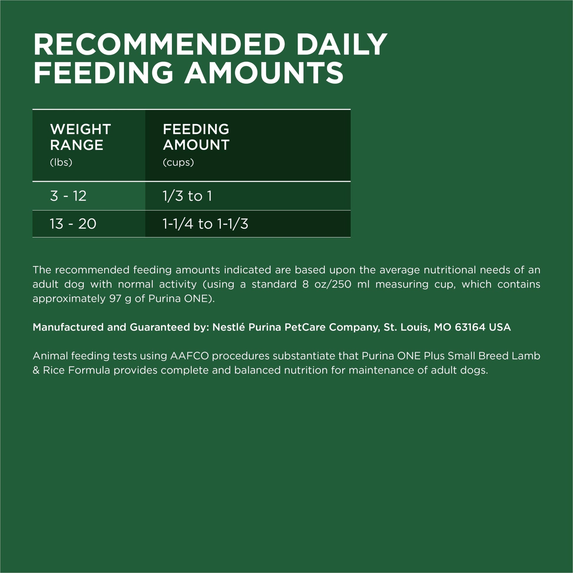 Details: Satisfy your small dog with Purina ONE +Plus Natural Small Breed Lamb and Rice Formula With Added Vitamins, Minerals and Nutrients adult dry dog food. Real lamb is the first ingredient in this small dog food. The dog dry food has 0 percent fillers, and our adult dog food uses no poultry by-product meal and no artificial flavors or preservatives. Formulated to support the health and energy of active small dogs during their typically longer lifespan, this highly digestible dog food kibble is nutrient-dense with antioxidants for immune support. Omega-6 fatty acids, vitamins and minerals in this Purina dry dog food for small dogs support a shiny coat and healthy skin. Crunchy kibble and calcium in our Purina dog food for small breeds support strong teeth and healthy gums. It has 100 percent complete and balanced nutrition for adult dogs. The high protein dry dog food helps support strong muscles. Crunchy kibble and tender, meaty morsels in this Purina lamb and rice dog food entice him to his bowl.