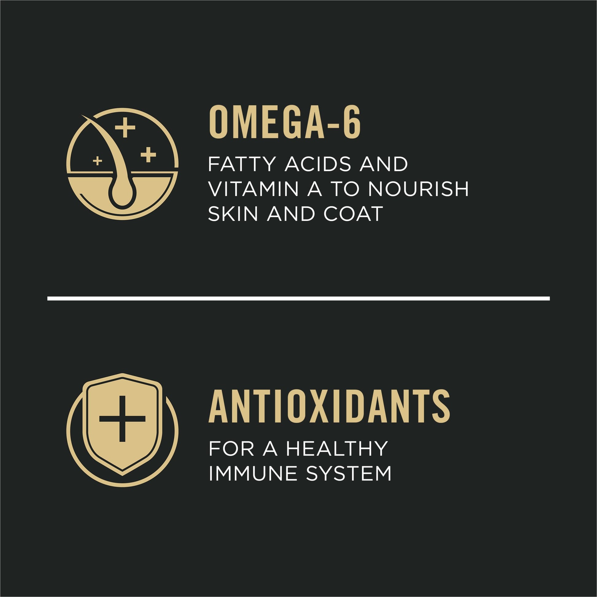 - Dog kibble with Omega-6 fatty acids and vitamin A to nourish skin and coat health