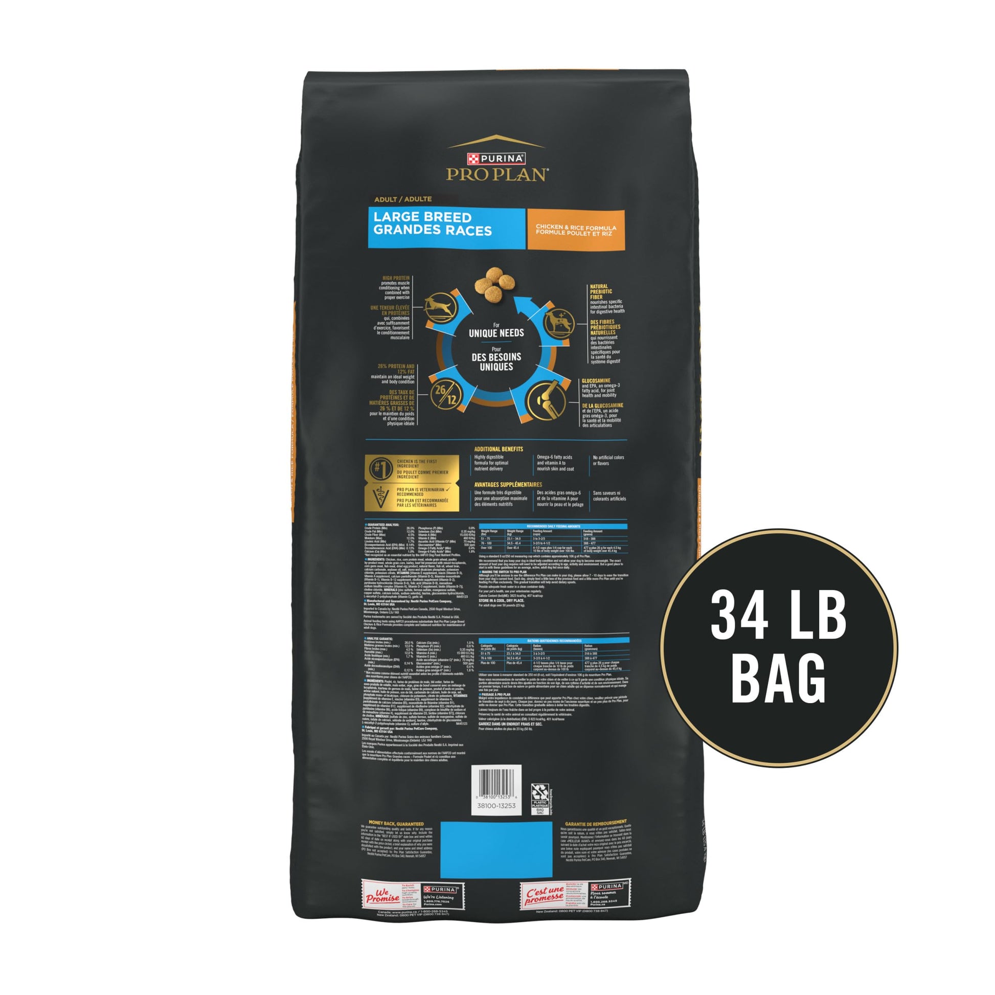 Purina Pro Plan High Protein, Digestive Health Large Breed Dog Food Dry, Chicken and Rice Formula - 34 lb. Bag