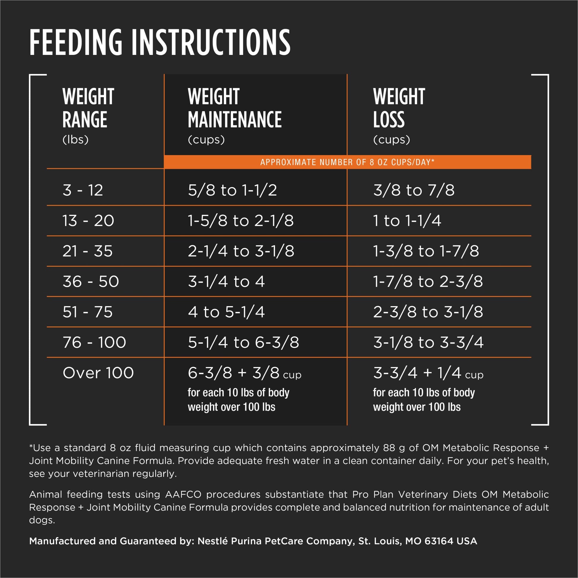 Details: Help your overweight dog drop those extra pounds while offering him nutrition for joint health with Purina Pro Plan Veterinary Diets OM Metabolic Response Plus Joint Mobility dog kibble. This weight management dry dog food contains an innovative nutritional blend that includes a high level of long-chain omega-3 fatty acids to offer your dog joint health support and glucosamine for cartilage health. Each serving of this Purina Pro Plan weight management dog food features high protein to promote the loss of body fat while helping maintain lean muscle mass. This formula also includes antioxidant vitamins A and E to support a healthy immune system. The science behind our therapeutic diets represents a collaboration between Purina nutritionists, researchers and veterinarians. Start your dog on Purina Pro Plan Veterinary Diets OM Metabolic Response Plus Joint Mobility dog kibble and help them reach their ideal body weight.