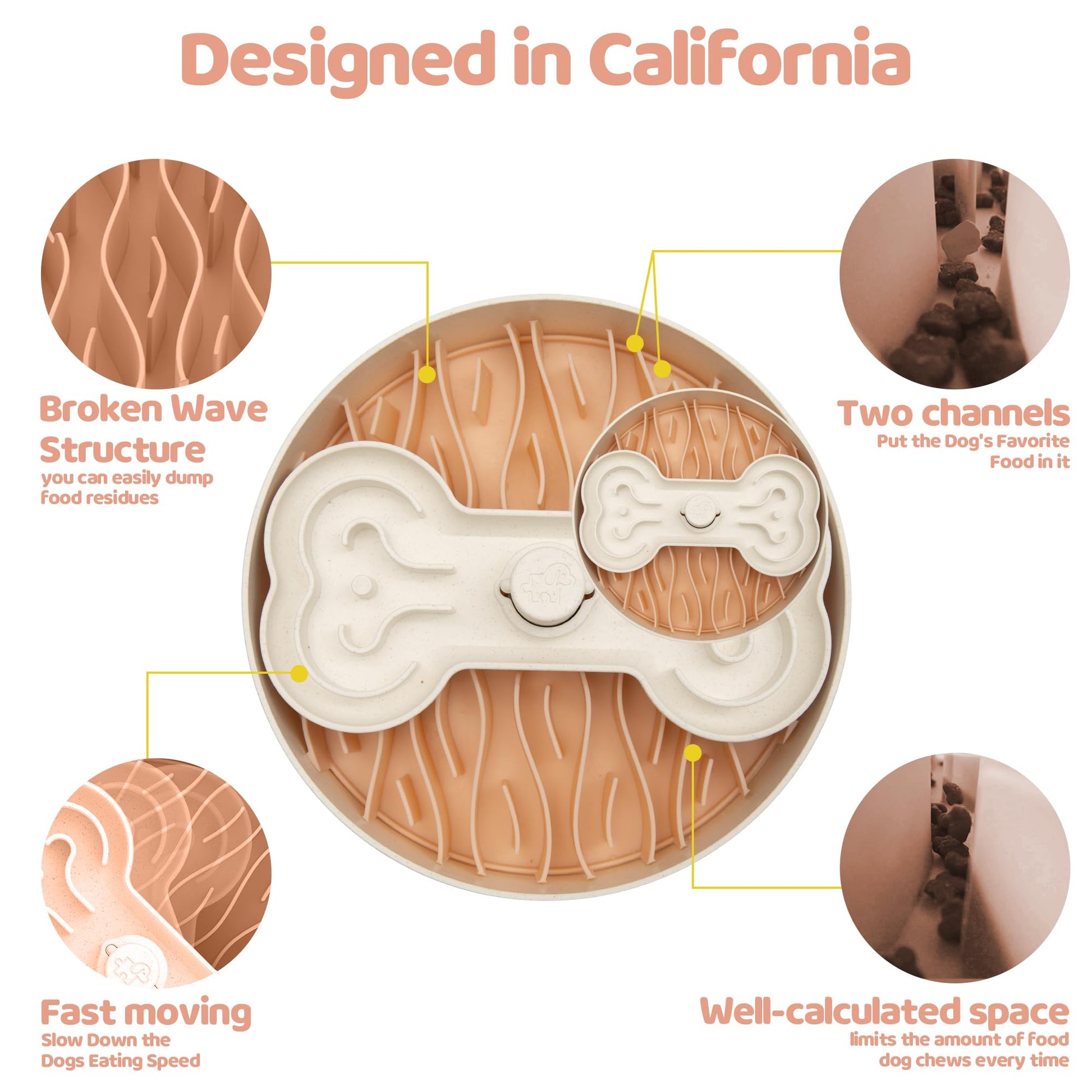 Adjustable 1x-15x Slowing Speed: Wave and bone-shaped puzzle inserts slow eating speed by up to 15x, helping large dogs who gulp food too fast stay safe while keeping meals fun