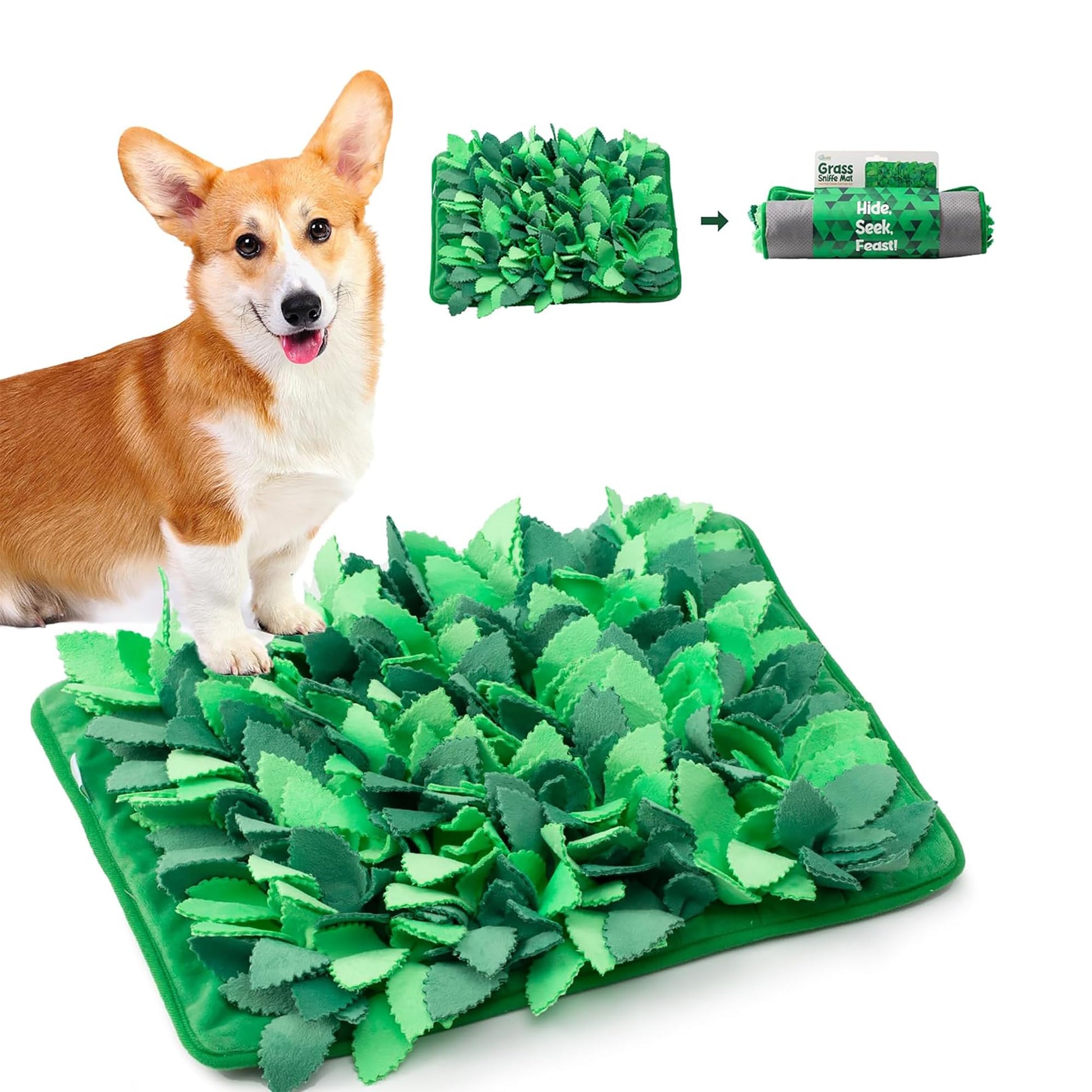 • SNUFFLE MAT FOR DOGS: The dog feeding mat features unique grass shaped design, mimics the feel of real grass, attracts your dog's attention and allowing them to engage their natural foraging instincts. The snuffle mat helps them burn off excess energy