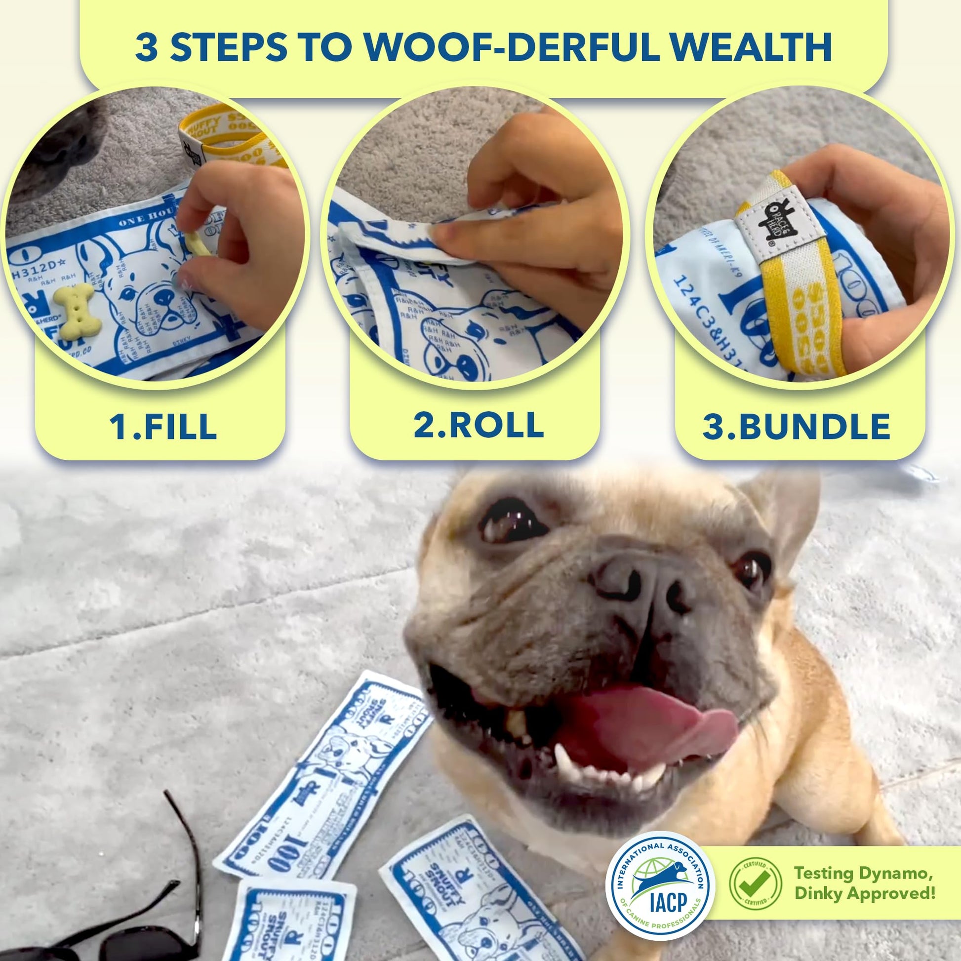 • Interactive Dog Puzzle & Snuffle Dog Money Toy – Fun money-themed design combines dog enrichment toys, food puzzles for dogs, and snuffle mats to encourage natural foraging. Perfect for puppy enrichment toys, dog stimulation toys, dog food puzzles, and mental stimulation for dogs.