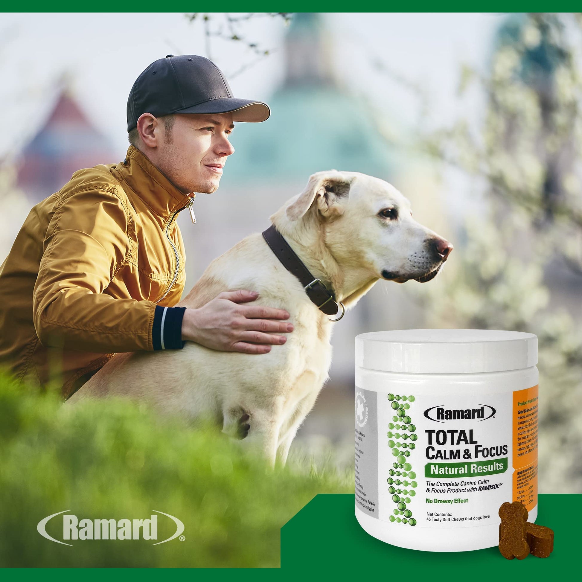 Ramard Total Calm & Focus Dog Treat Supplement - Natural Calming Chews with Magnesium & B-Vitamins - 45 Soft Chews for Canine Calmness During Training, Grooming, and Everyday Enjoyment