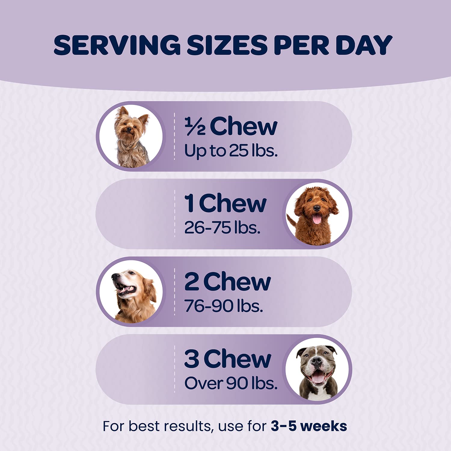 - Separation anxiety relief for dogs. If your dog gets stressed when you leave, just give them a daily dose of these calming dog treats, and relieve your dog anxiety the healthy way. These dog vitamins are also a favorite for storms, vet visits, and other stressful situations.