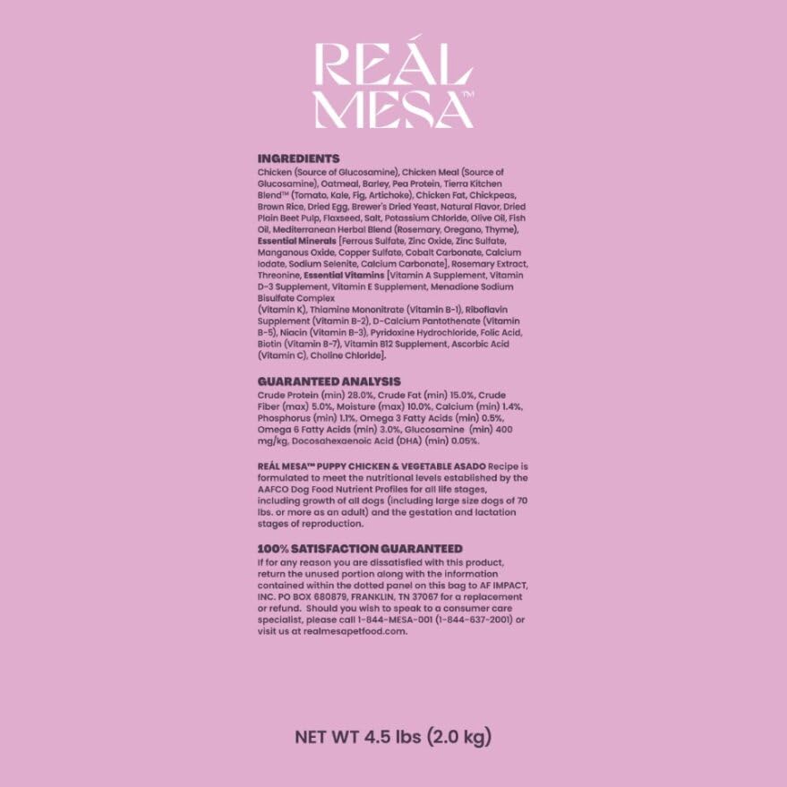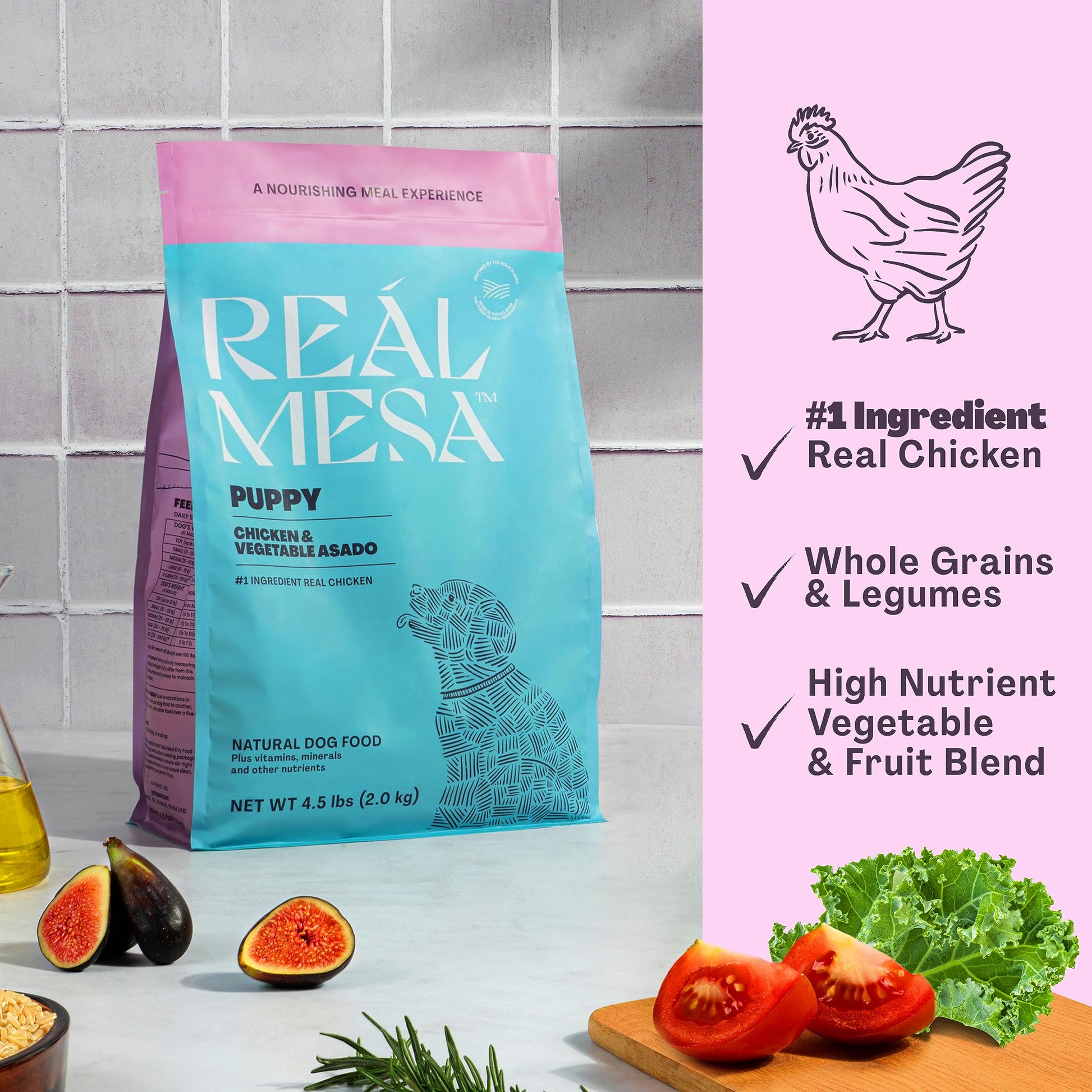 REÁL MESA Premium High-Protein Puppy Food for Healthy Growth & Development - Natural Chicken & Vegetable Asado Recipe with DHA, Calcium, & Antioxidants - Nutritious Dry Dog Food, All Breeds (4.5 lbs)