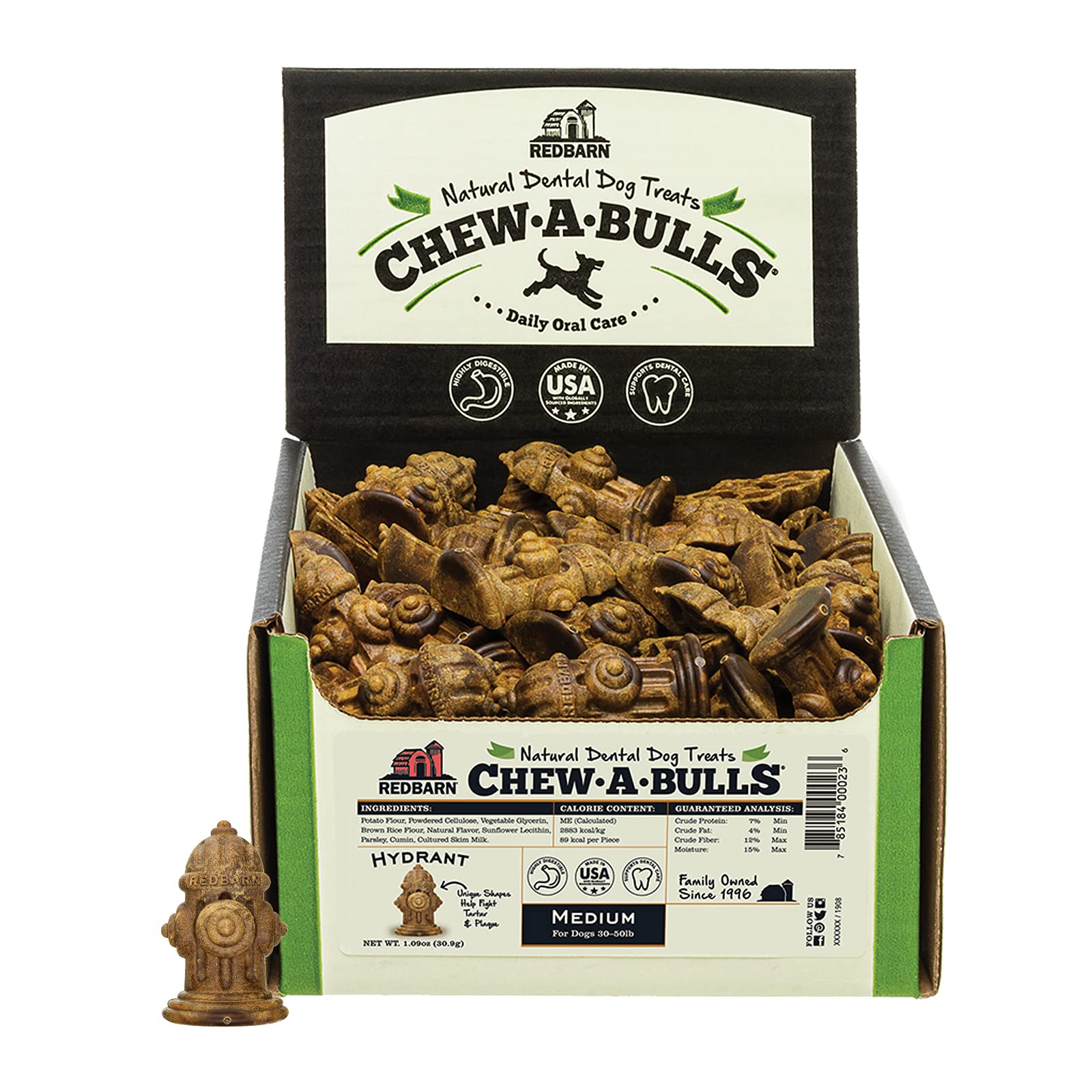 - Made with rich spices like cumin, natural fiber like miscanthus grass, and antioxidants like parsley, Redbarn Chew-A-Bulls are easily digestible, highly palatable and the perfect pairing to your pup’s daily dental routine.