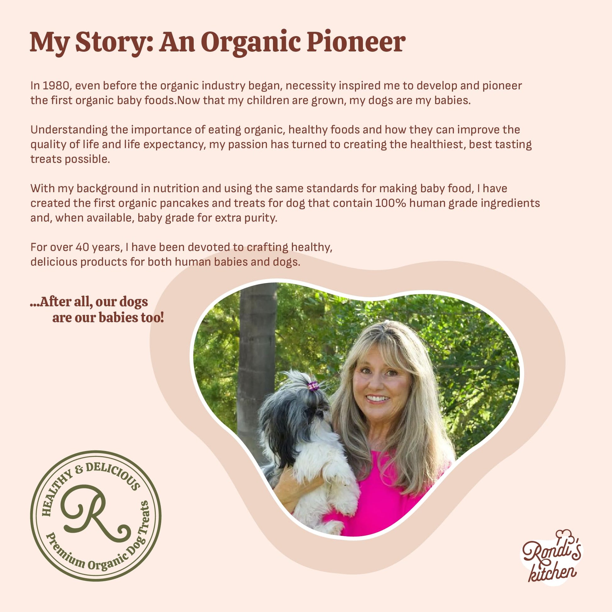- Pioneering Organic Standards Since 1980: As leaders in organic dog treats, we bring decades of experience to pioneering premium treats for your beloved dogs. Our dog treats are crafted with love and care, ensuring the best for your furry family.