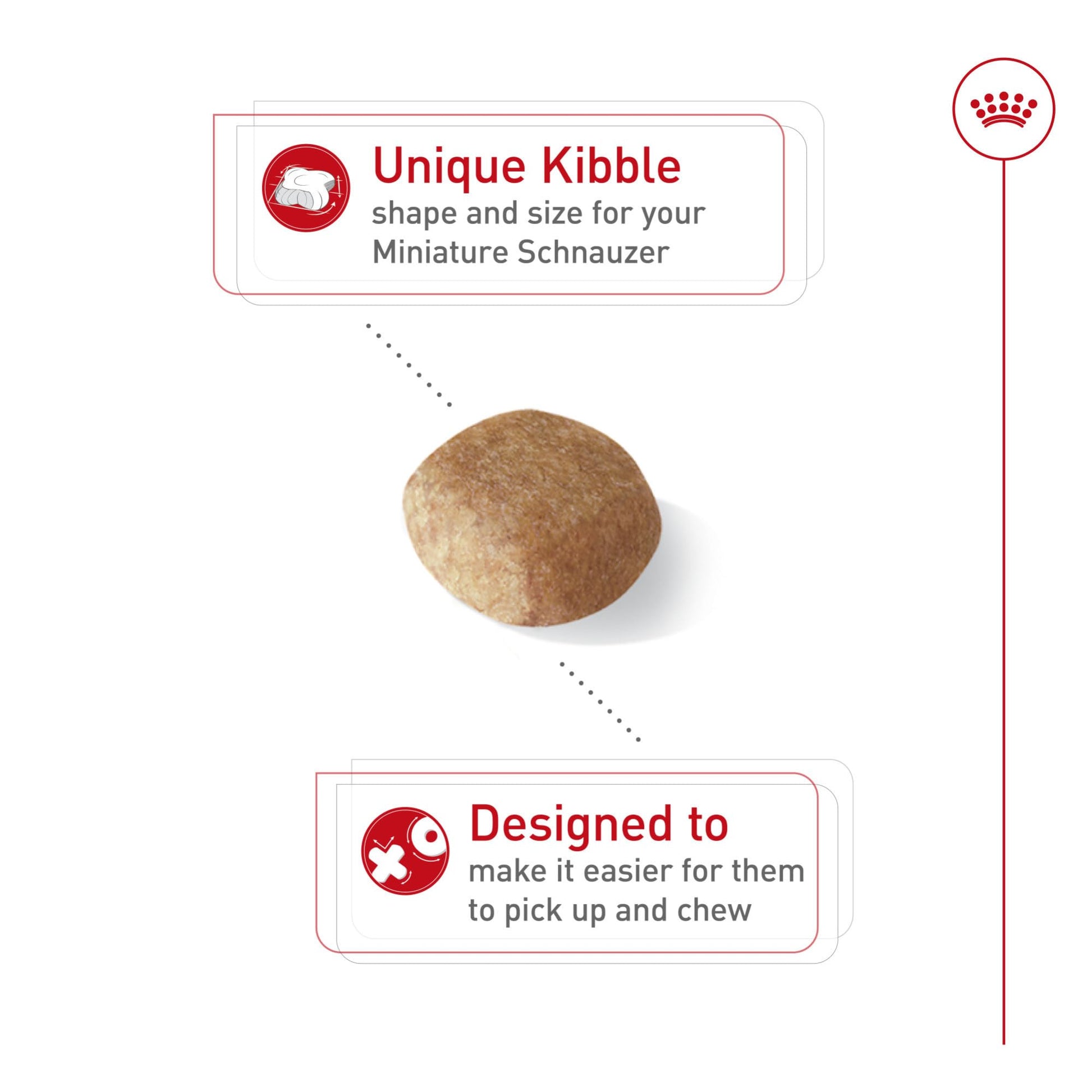 SPECIALIZED KIBBLE: Unique kibble shape helps Miniature Schnauzers pick up and chew their food