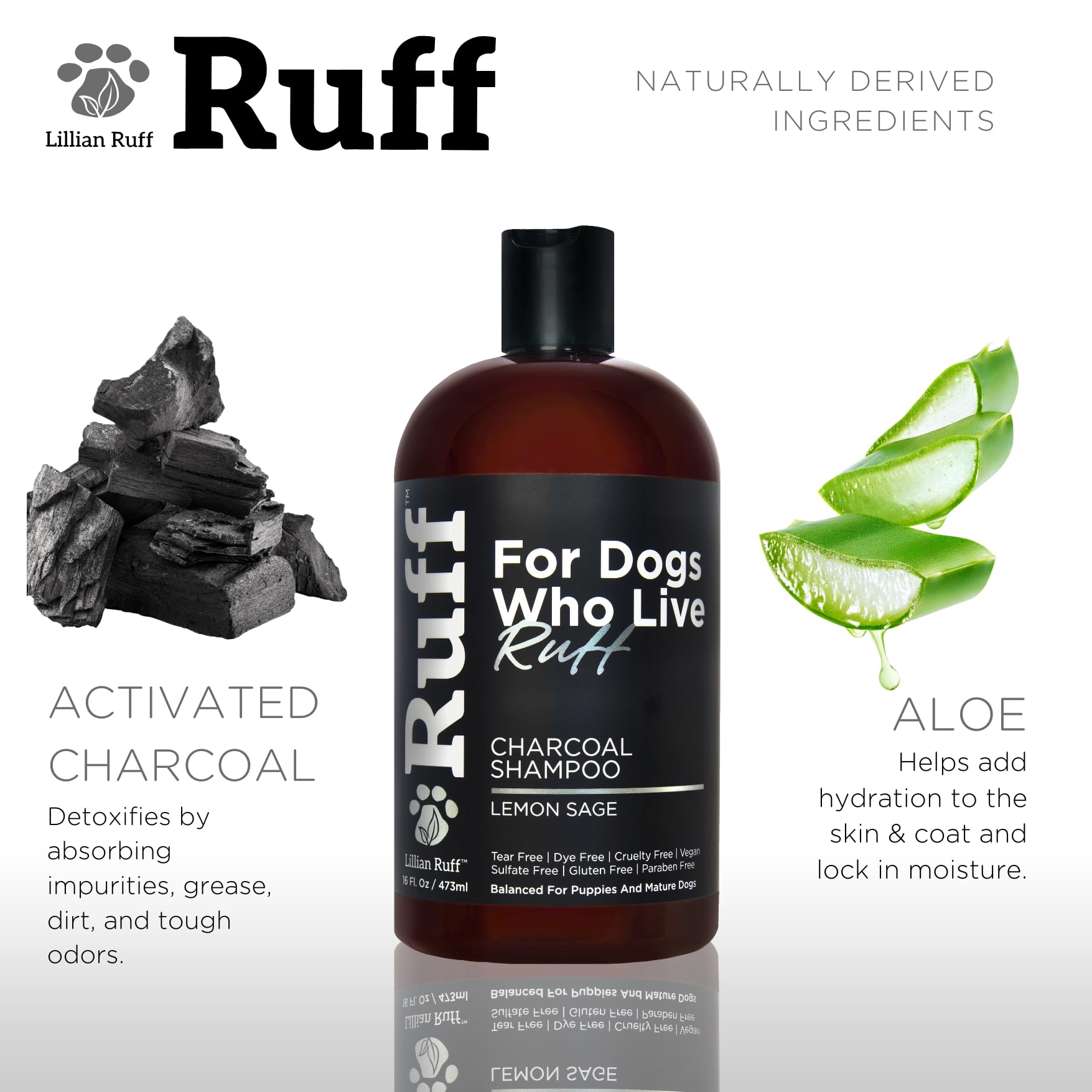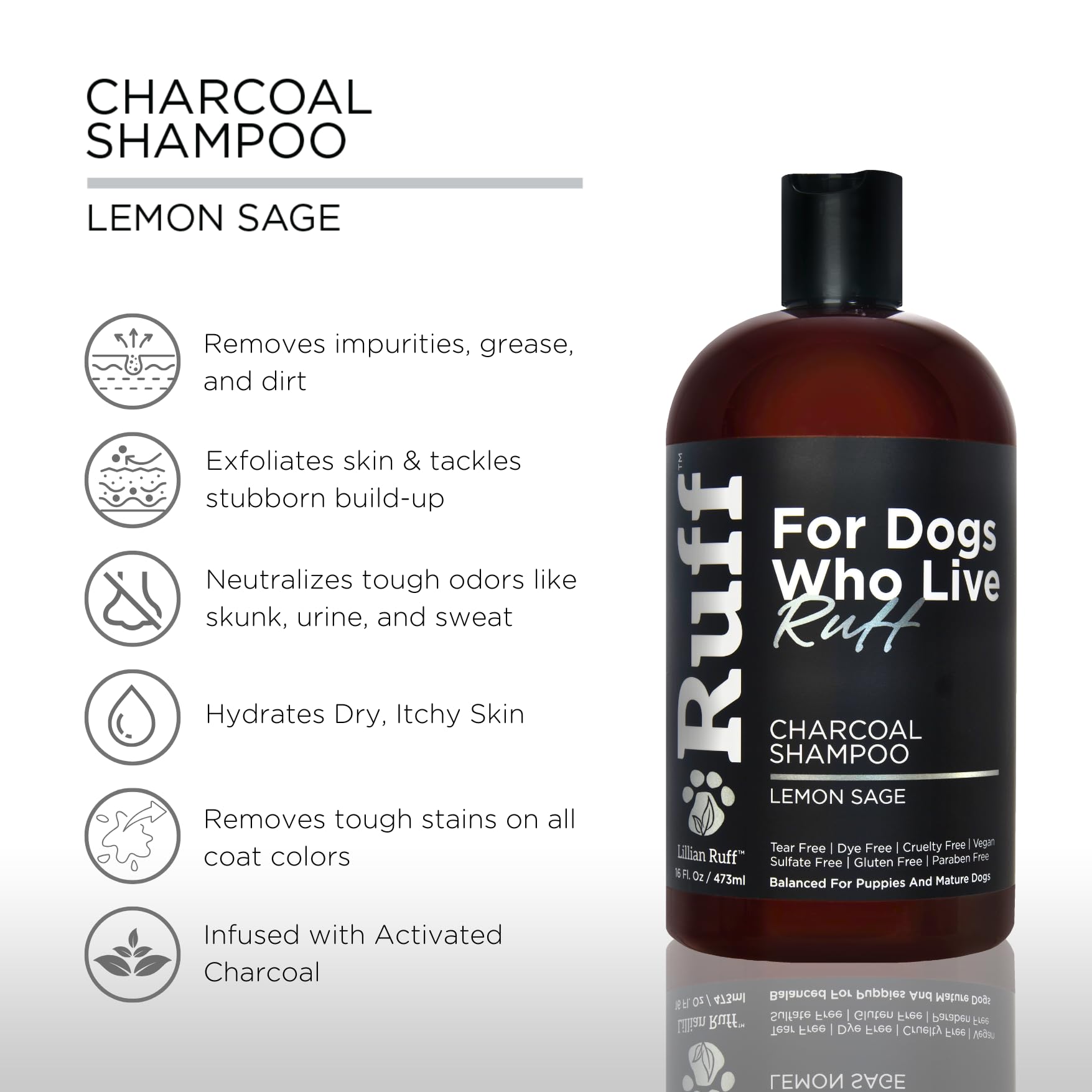 Ruff by Lillian Ruff Activated Charcoal Pet Shampoo – Deep Cleanser, Deodorizer, Stain Remover – Lemon Sage Scent, pH Balanced, Hydrate Dry Itchy Skin – Safe for Puppies & Mature Dogs
