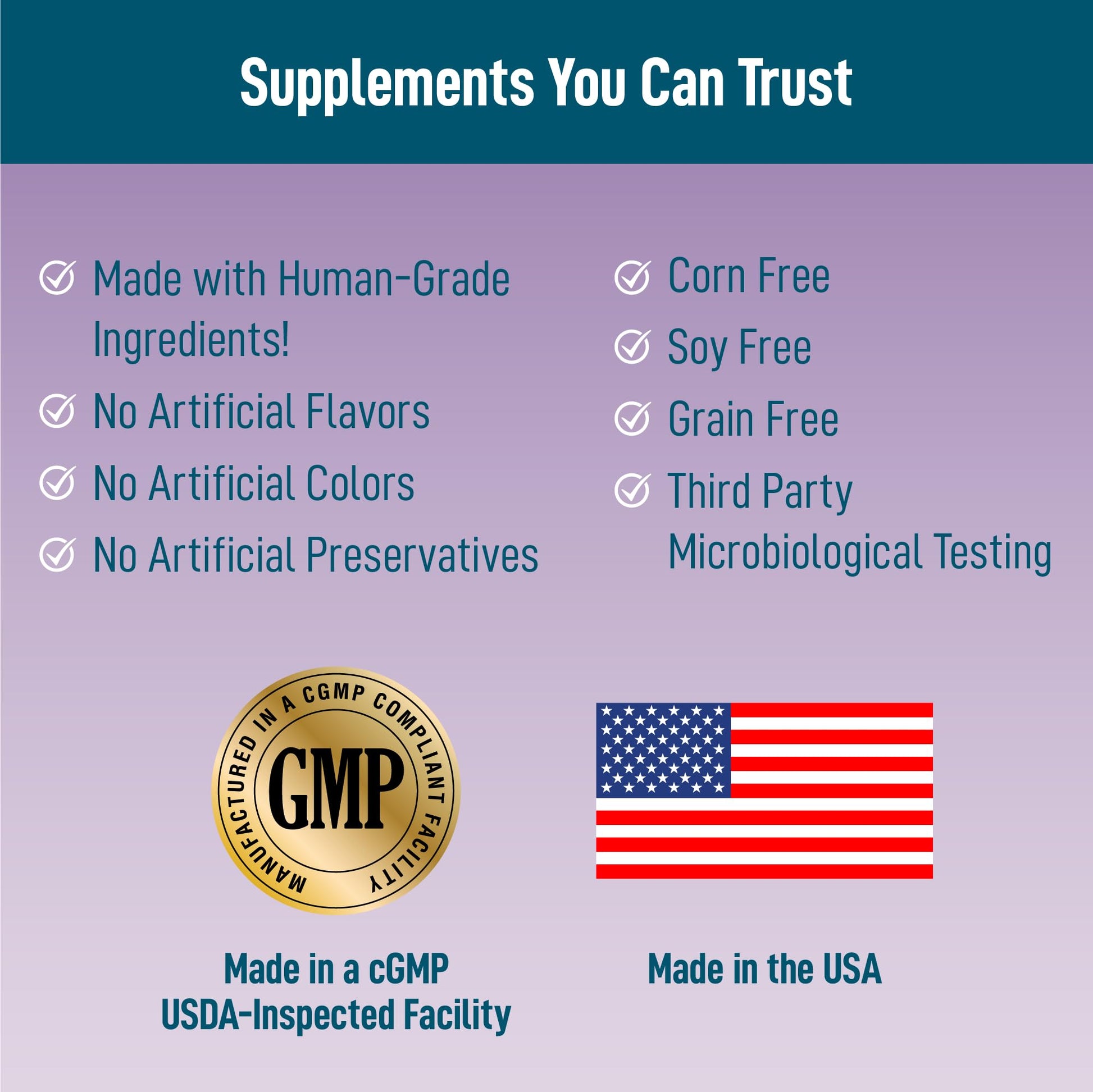 • SUPPLEMENTS YOU CAN TRUST: formulated specifically for dogs in a quality eGMP facility rated for human foods! Saint Barkus chews contain organic ingredients, avoid harsh chemical preservatives and include natural flavors. 100% SATISFACTION GUARANTEE