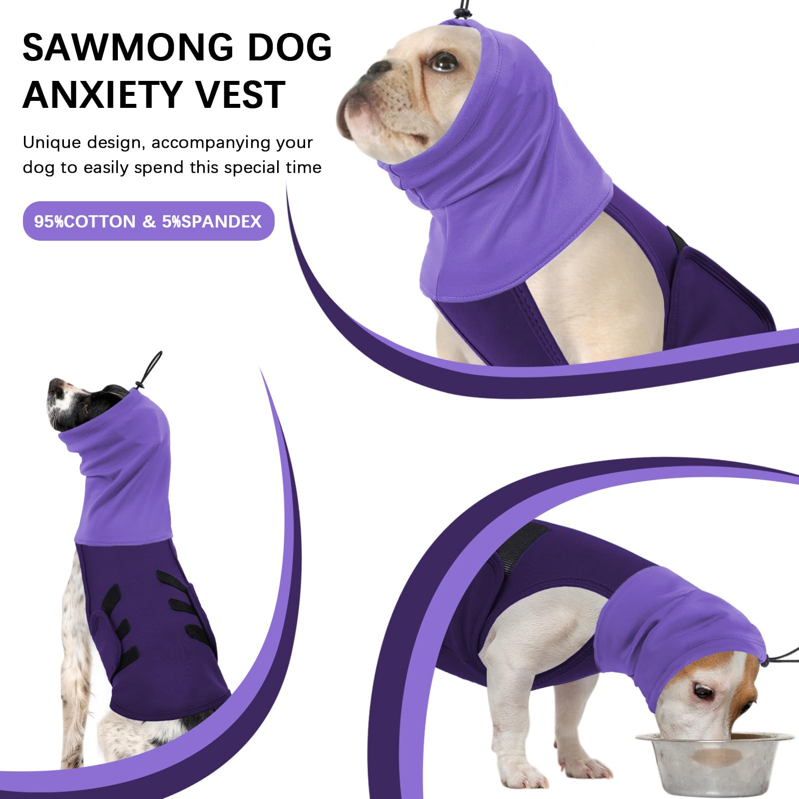 SAWMONG Dog Anxiety Vest, Breathable Calming Shirt Adjustable Chest & Hood for Dogs, Soft Pet Stress Relief Calming Coat Wraps Ears for Noise, Thunderstorms, Fireworks and Separation(Purple, X-Large)
