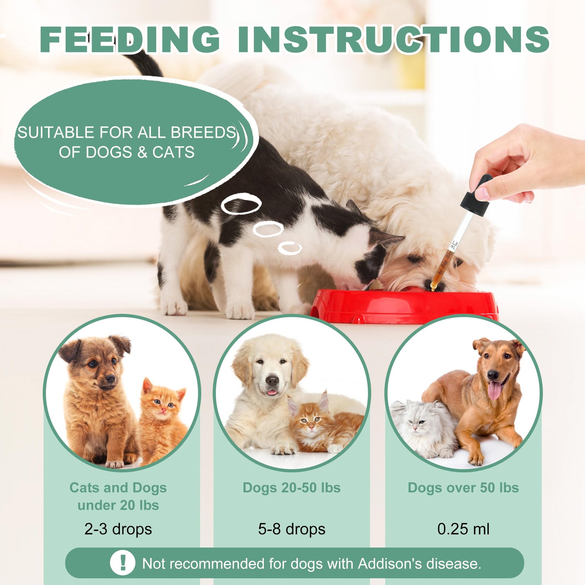 Safe & Easy to Use for All Breeds: Our alcohol-free, preservative-free formula is safe for cats and dogs of all ages and sizes. The liquid dropper makes it easy to mix with food or give directly by mouth, ensuring stress-free administration