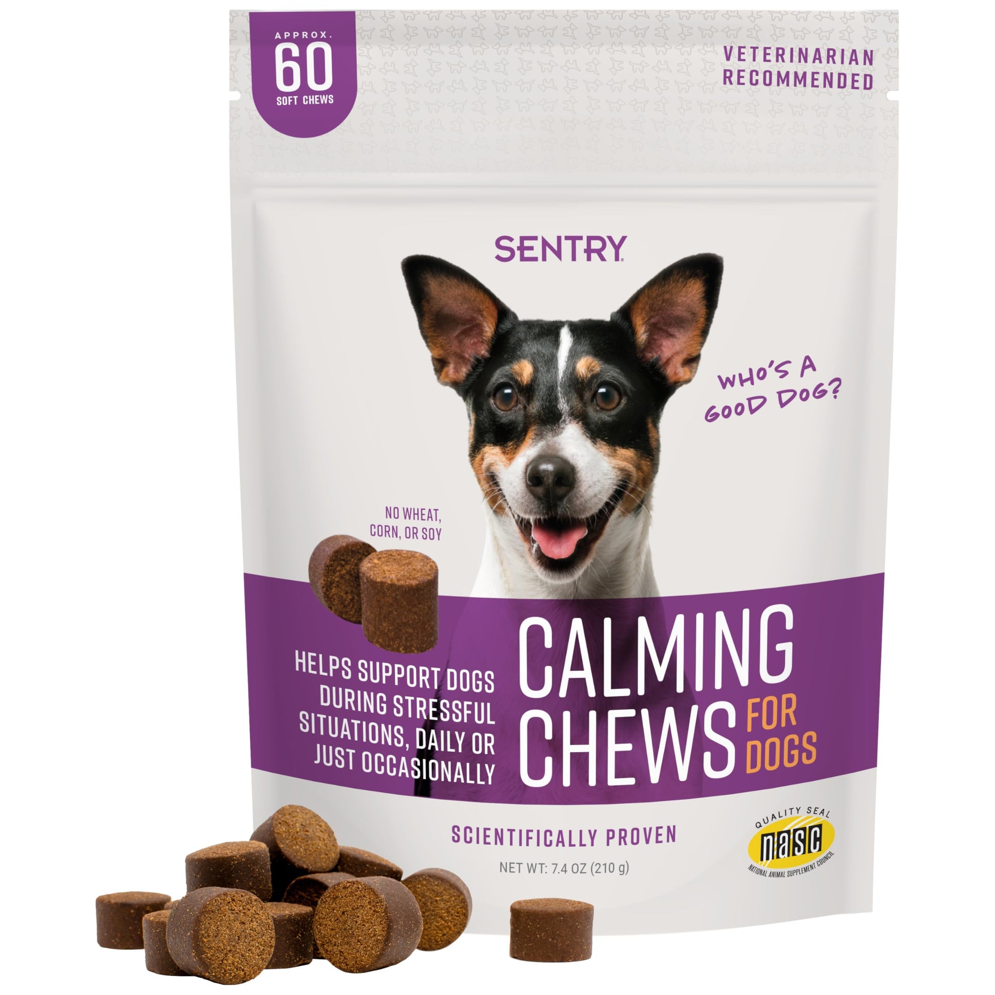 Less Stressful Lives: Sentry Dog Calming Chews contain a pheromone that helps calm anxious dogs during stressful situations