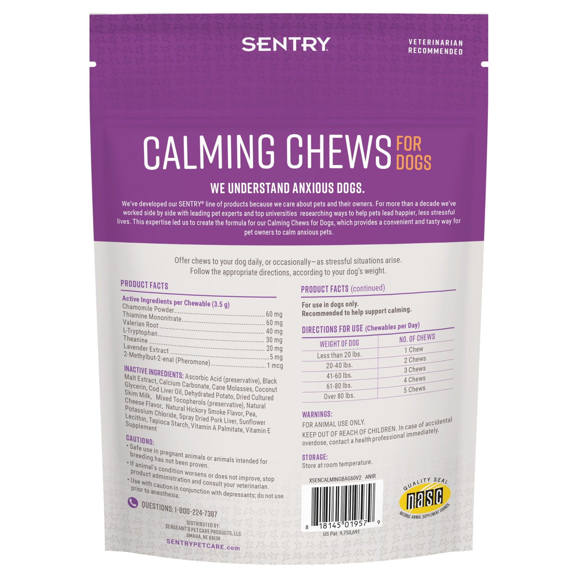 Sentry Calming Chews for Dogs, Calming Aid Helps to Manage Stress & Anxiety, with Pheromones That May Help Curb Destructive Behavior & Separation Anxiety, Health Supplement for Dogs, 60 Count