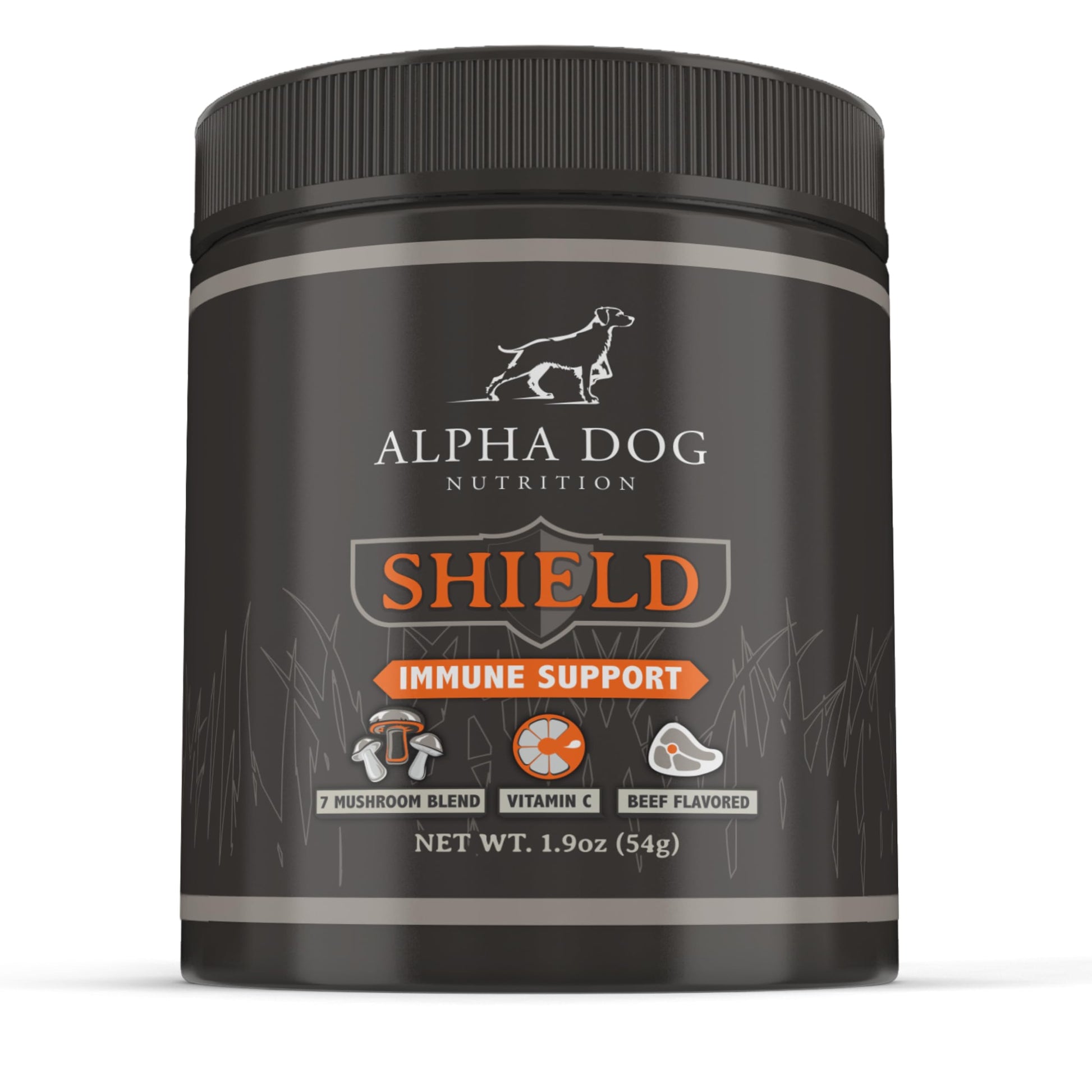 Shield Allergy Immune Support Supplement for Dogs by Alpha Dog Nutrition - 7 Nutritional Mushroom Powder Complex + Vitamin C to Boost Immunity - Up to 60 Servings for Small Breed Dogs, 54g