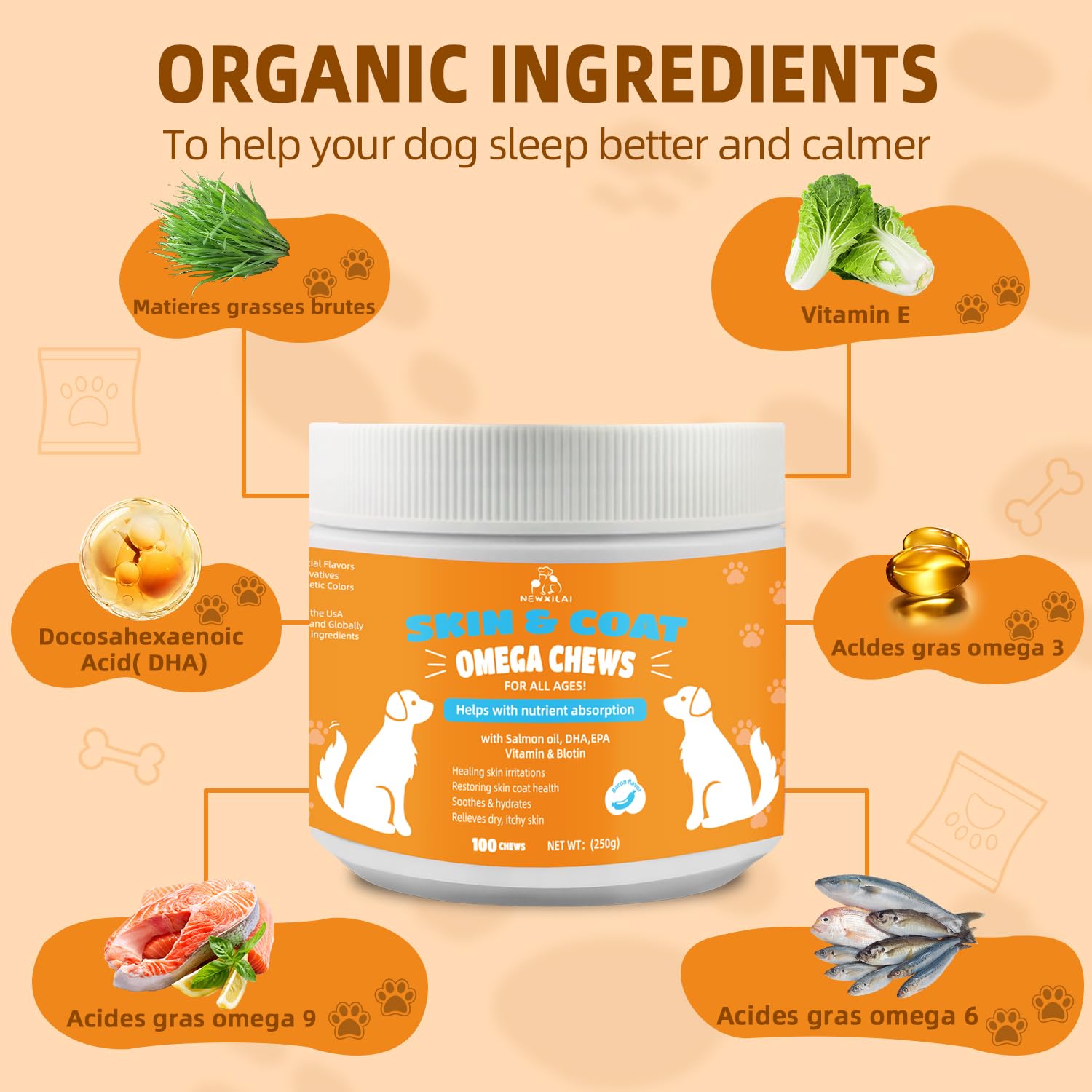 • For All Dogs Breeds & Sizes: Each box contains 100 chewable tablets, suitable for dogs of various sizes, adjust the dosage according to your dog's needs. Regular use of skin & coat chews helps your pet nourish the skin and promote a healthy, lustrous coat
