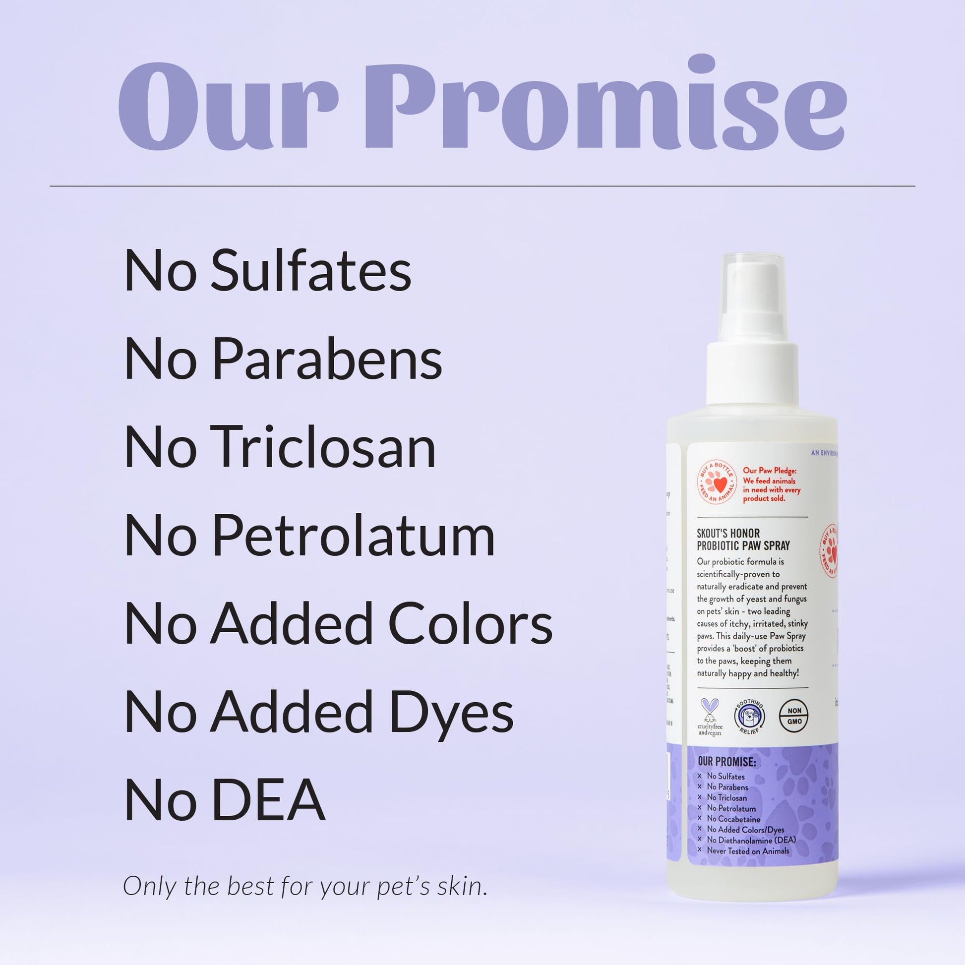 • Alcohol-Free and Safe - Skout's Honor Probiotic Paw Spray is free from alcohol, parabens, and sulfates, ensuring safe and natural care for your dog's paws.