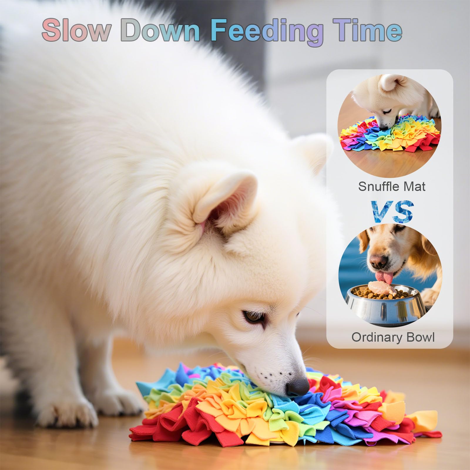 - ENRICHING MENTAL STIMULATION - Unleash your dog’s natural foraging instincts! Our snuffle mat’s dense, textured fleece strips captivate curious noses, transforming mealtime into a rewarding "hide-and-seek" adventure that sharpens focus and reduces boredom.