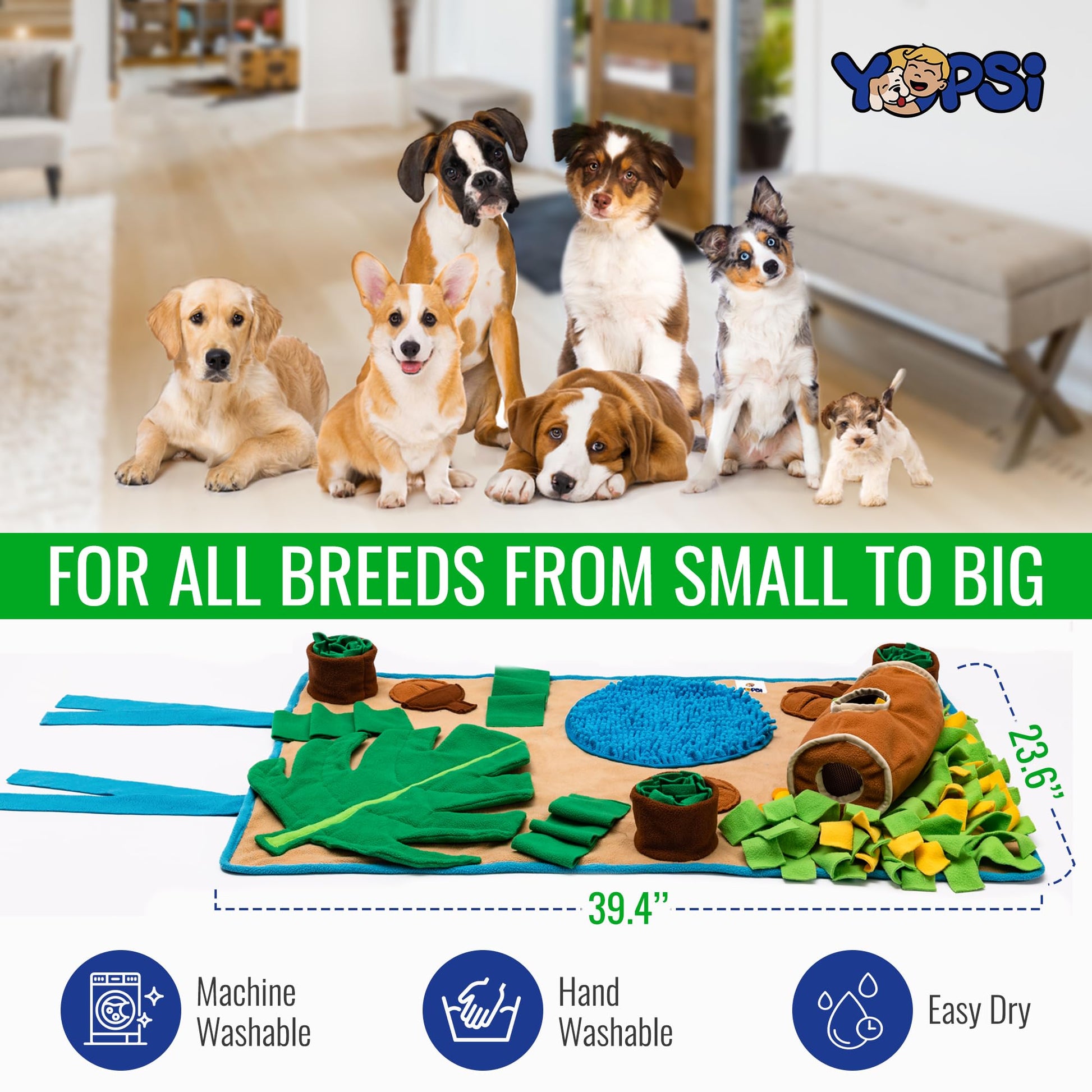- Wider Dog Puzzle Sizes: This dog digging toy fits most dog muzzles. The dog treat mat is 39.4''x23.6'', has a non-slip bottom. It is made of soft material for pet comfort and safety. Machine washable
