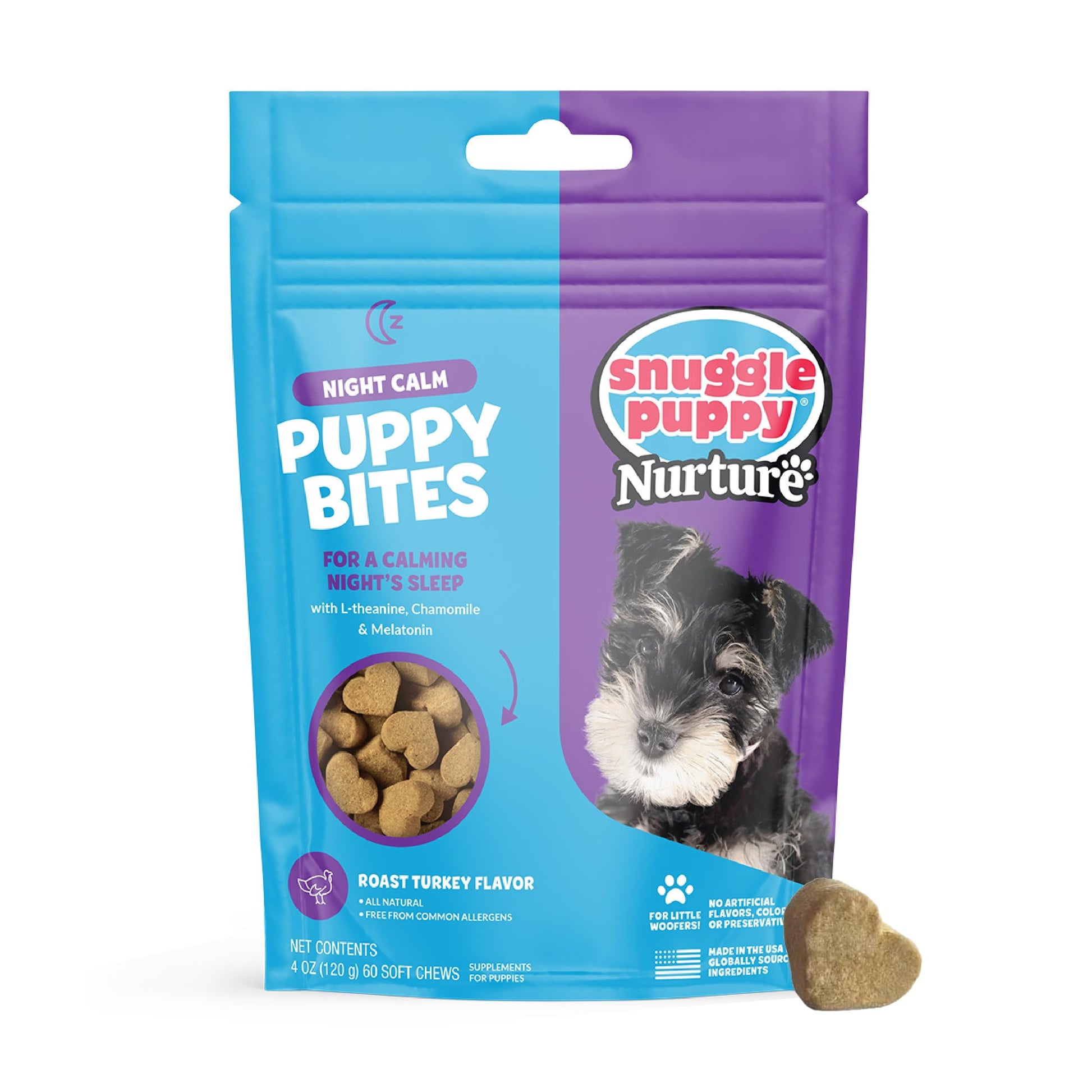 Snuggle Puppy Night Calm Puppy Bites with Melatonin, Chamomile & Ashwagandha - Calming Treats for Dogs - Melatonin for Dogs to Support Restfulness & Sleep - 60 Soft Chew Dog Treats