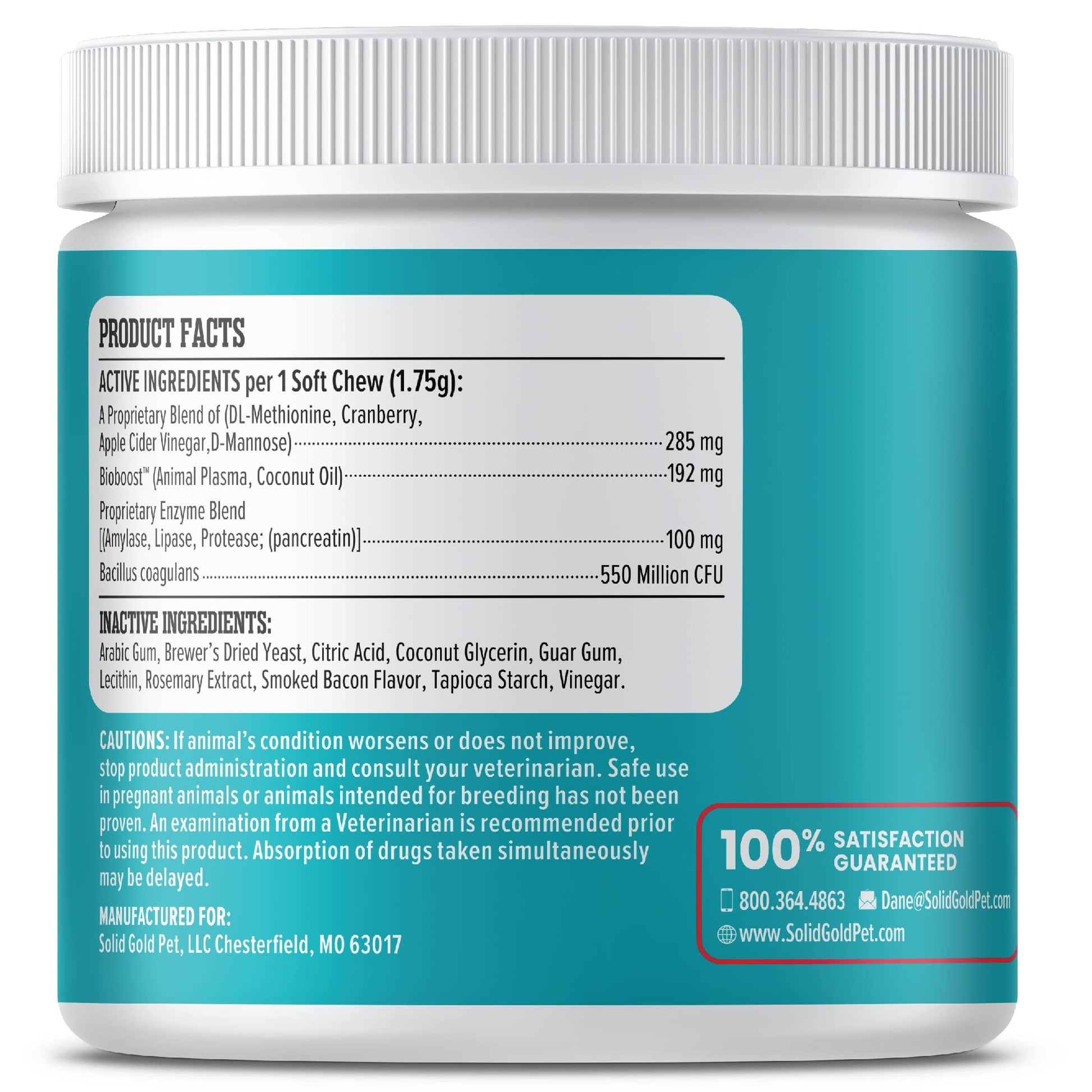 Solid Gold Dog Pee Grass Repair Chews - Dog Urine Neutralizer for Lawn w/Urinary Tract, Kidney, Bladder & pH Support to Reduce Grass Pee Spots & Burn - Pet Urine Neutralizer Treats - Bacon - 120ct