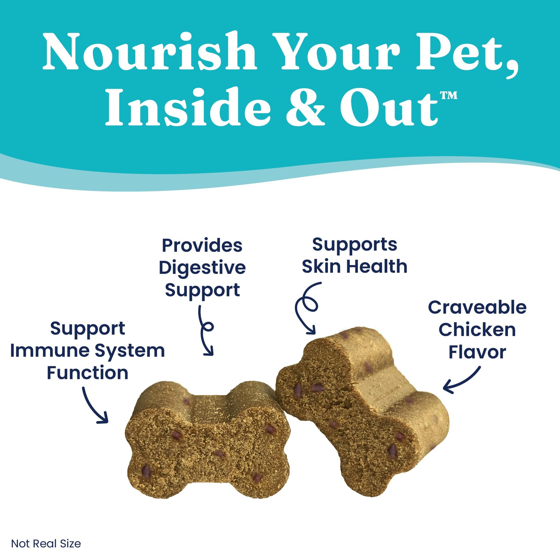 - Soft Chicken Flavored Chews– These bacon-alternative chicken-flavored dog vitamins multivitamin are easy to chew & perfect for picky seniors. A delicious & easy alternative to dog multivitamin powder, tablets, or messy liquid multivitamin for dogs