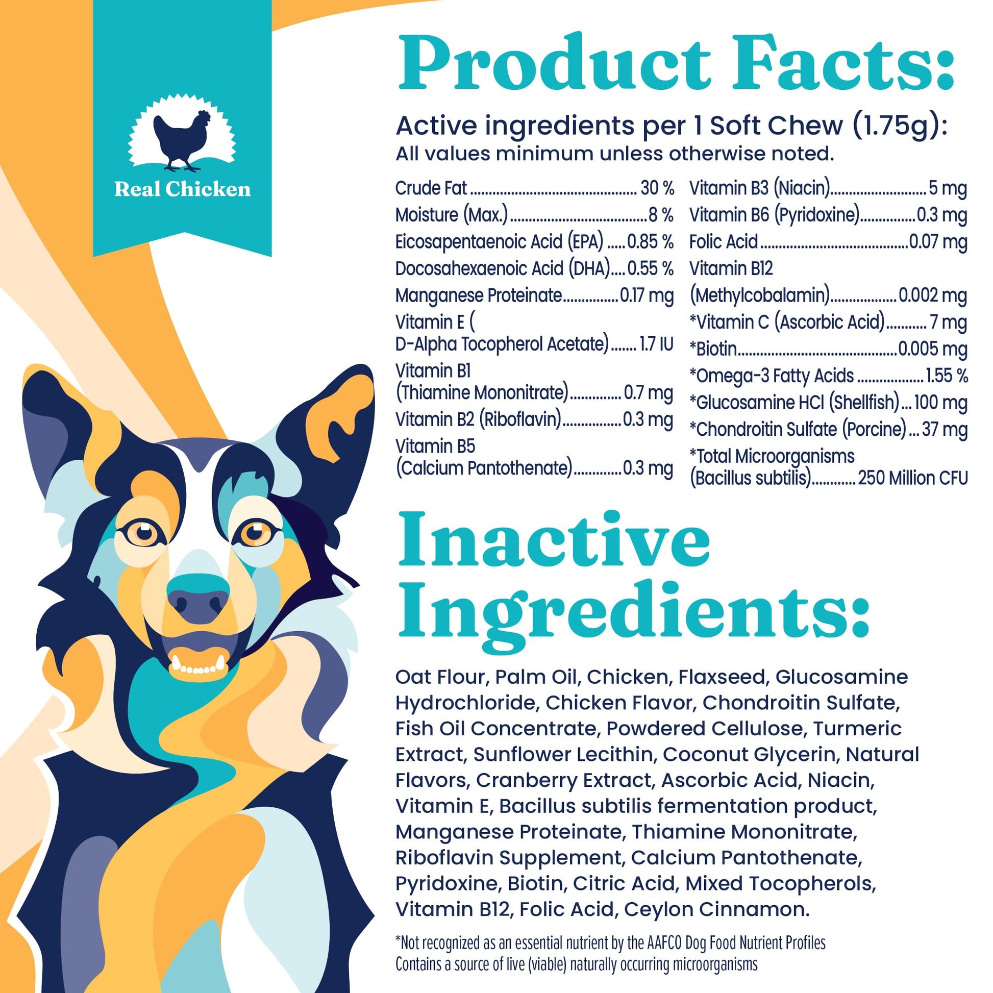 - Hip & Joint Support for Seniors – With glucosamine, chondroitin & amino acids, this dog joint supplement promotes flexibility, comfort & mobility. Perfect joint vitamins for dogs aging or needing a versatile multi vitamin for dogs