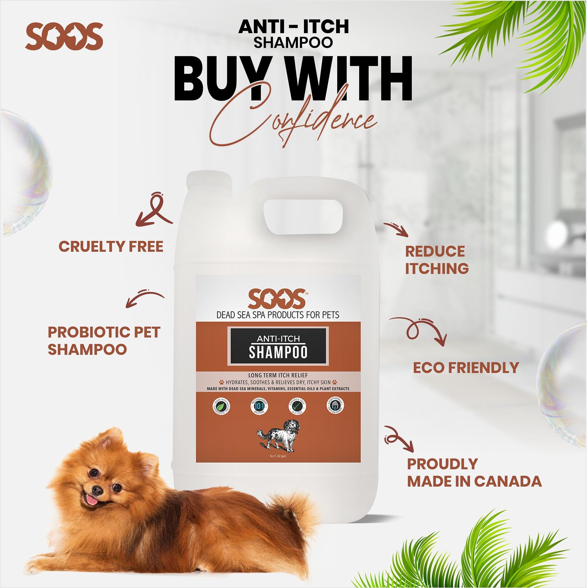 Soos Pet Shampoo Anti-Itch Natural Dead Sea Minerals Cat and Dog Shampoo with Vitamins Essential Oils Natural Ingredients Soothes Itching Clean Fur - 1x Pets Shampoo (4L)