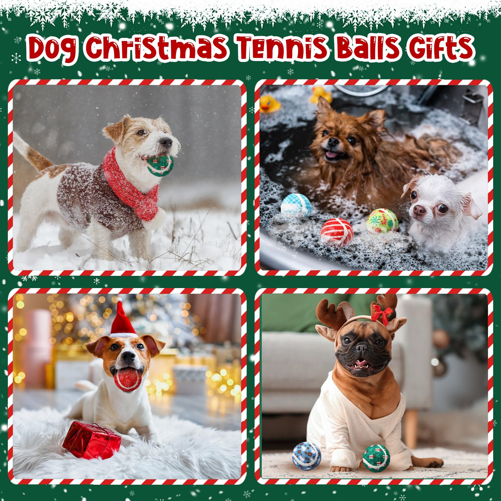 Christmas Tennis Balls for Dogs: from candy cane stripes to snowflakes to snowmen, each ball exudes classic Christmas charm; The festive colors instantly add a festive touch to your home, allowing your pet to join in the holiday spirit