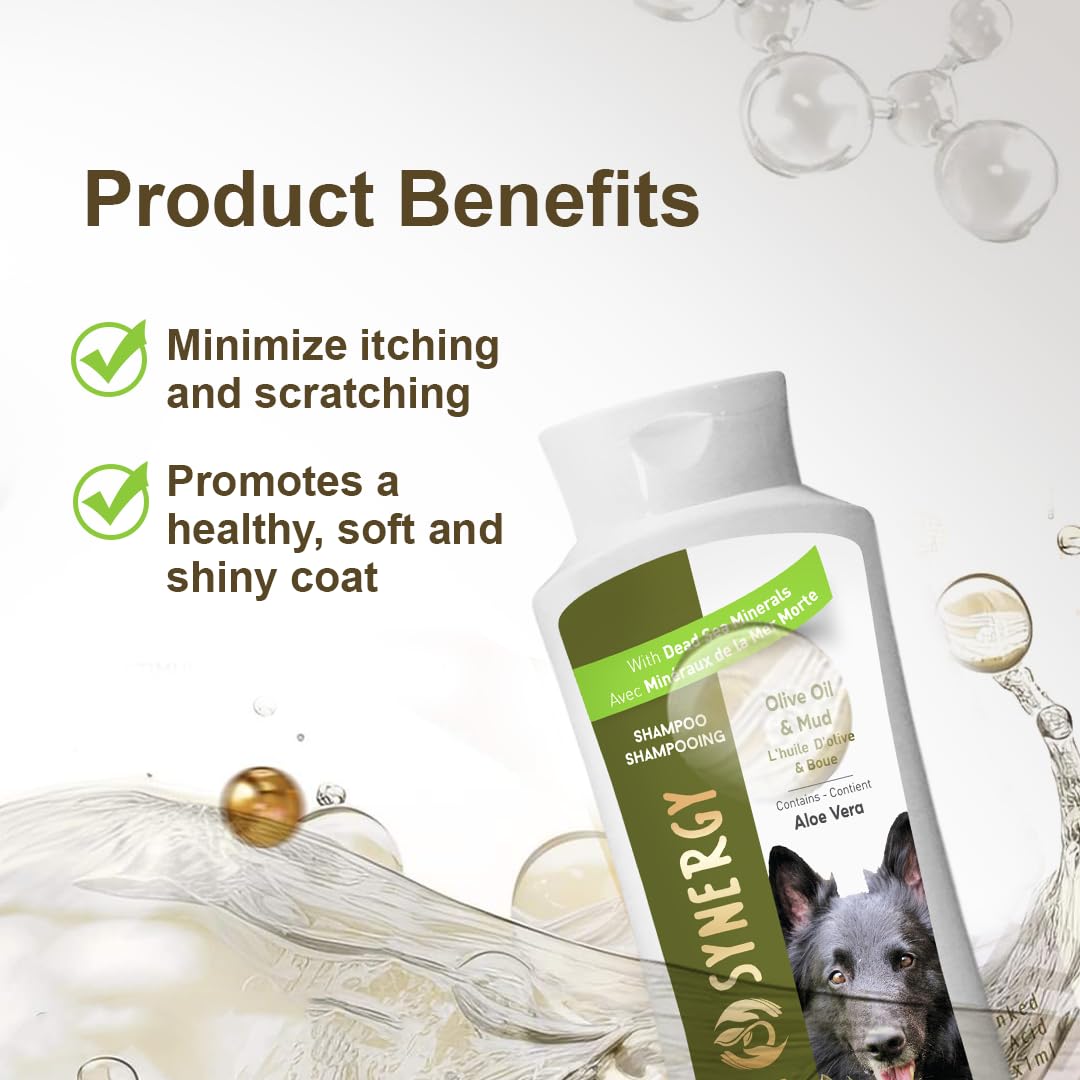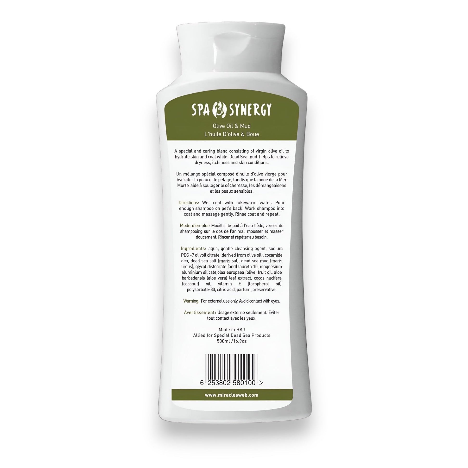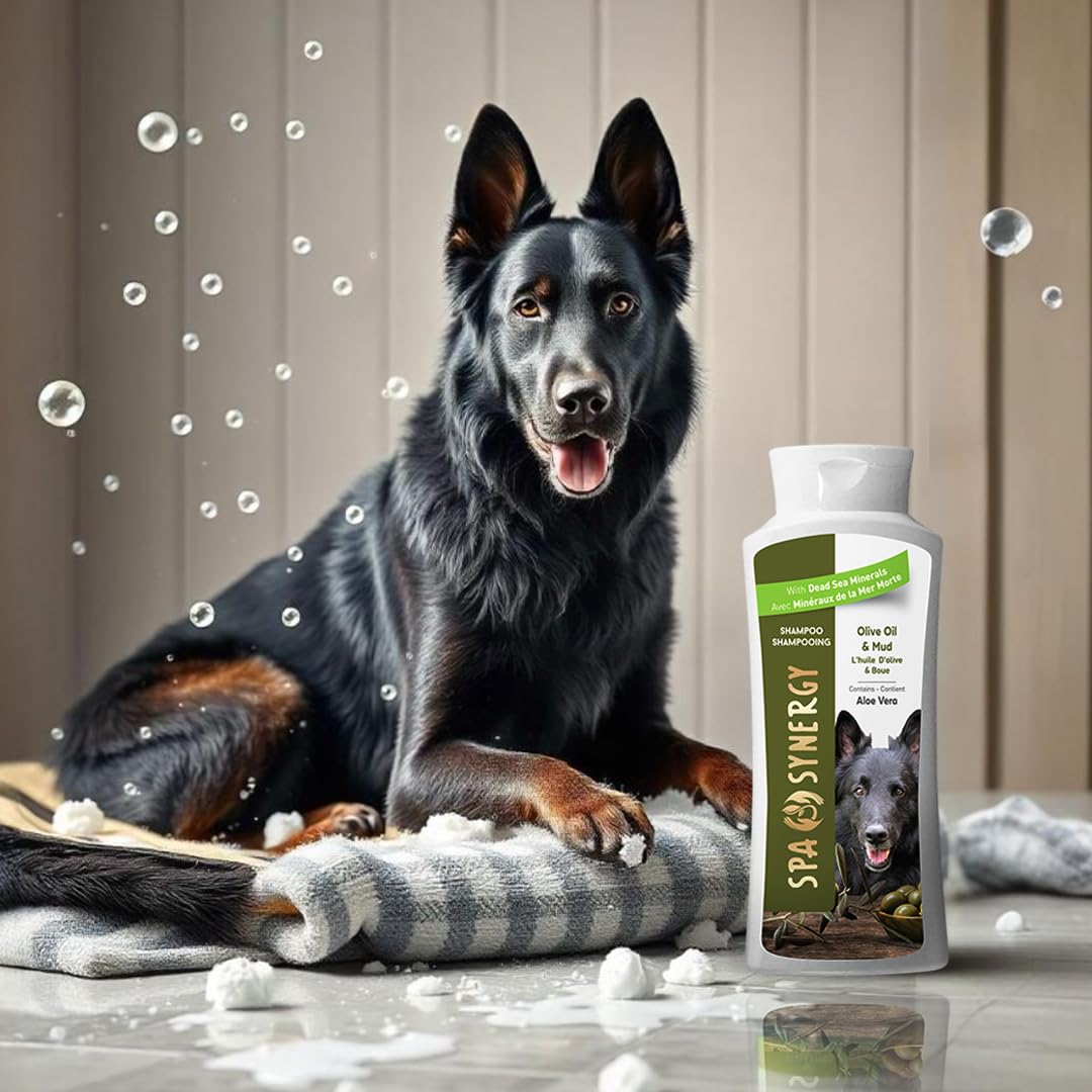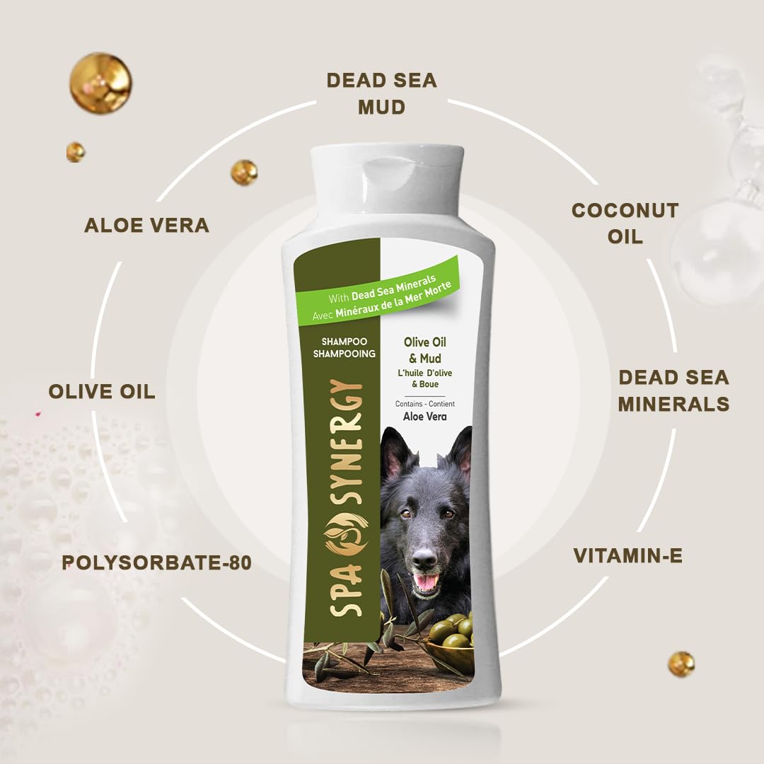 Spa Synergy Pet Dog Shampoo Mud and Natural Dead Sea Mineral Rich, Aloe Vera & Vitamin-E, Anti-itching, Soften & Shiny Coat, Moisturizing - Olive Oil - (1) Bottle 16.5 FL OZ
