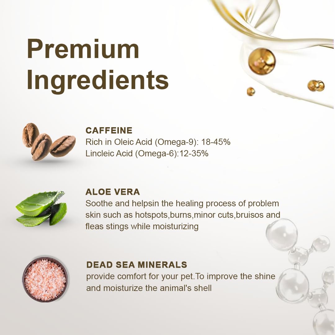 [Dead Sea Minerals]: Infused with minerals sourced from the Dead Sea, it replenishes and nourishes your dog's skin, promoting a healthier and shinier coat.