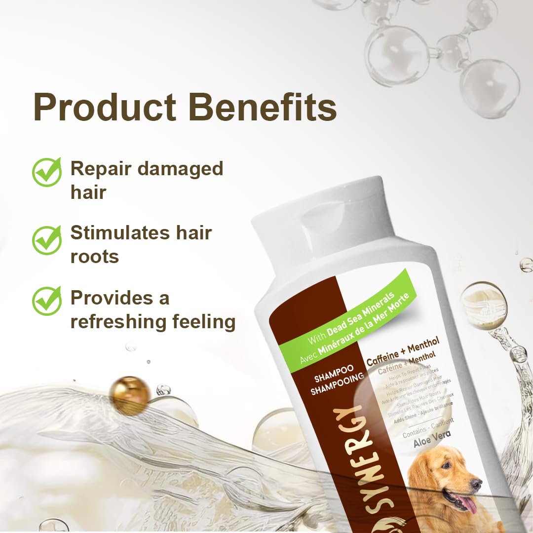 Spa Synergy Pet Dog Shampoo Natural Dead Sea Mineral Rich, Aloe Vera & Vitamin-E, Hair Repair, Stimulates Hair Roots, Refreshing - Caffeine & Menthol - (1) Bottle 16.5 FL OZ