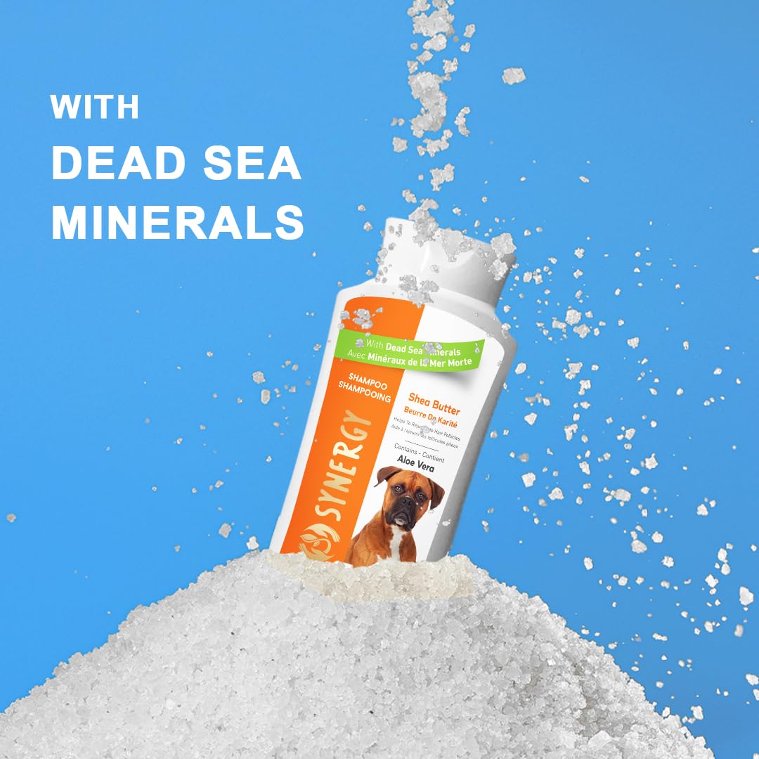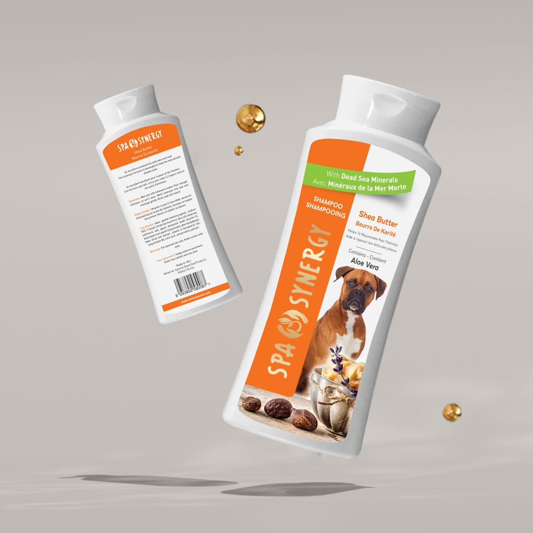 Spa Synergy Pet Dog Shampoo Natural Dead Sea Mineral Rich, Aloe Vera & Vitamin-E, Rejuvenate Hair Follicles, Emolliate Hair & Skin – Shea Butter - (1) Bottle 16.5 FL OZ