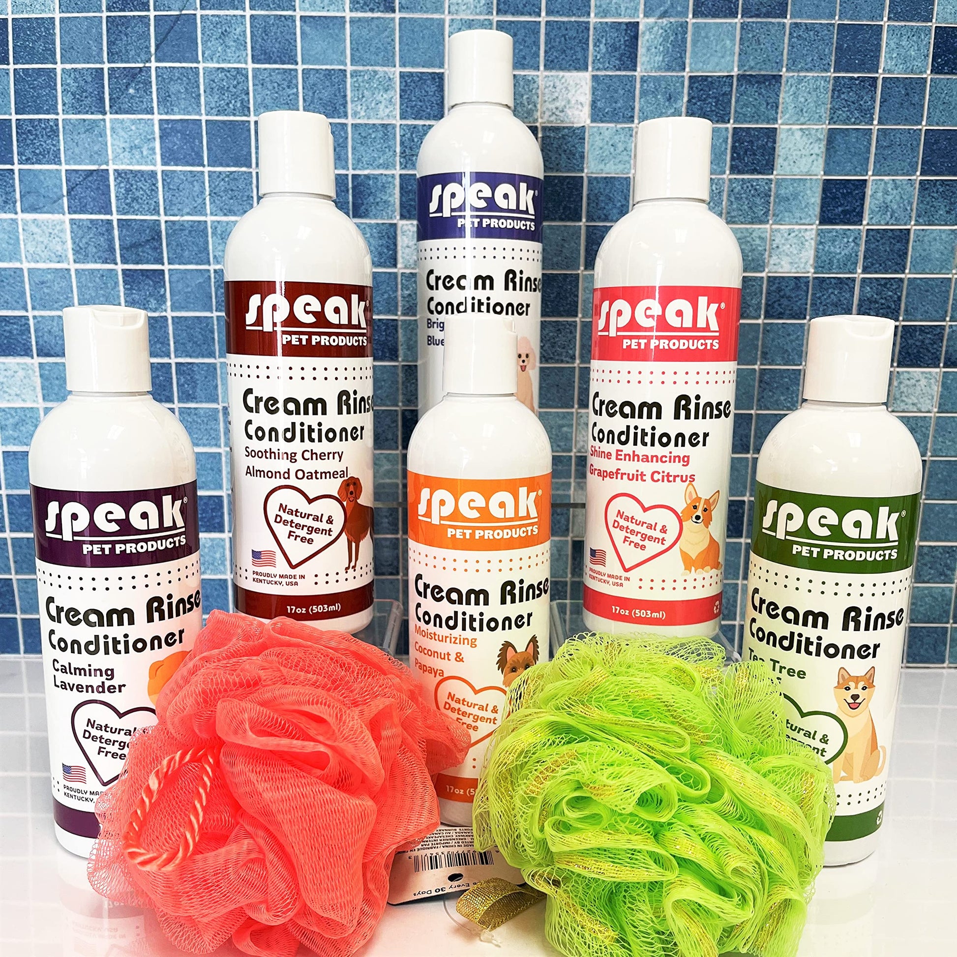 • Contains (1) 17 oz bottle of Speak Pet Products Detergent Free Tea Tree Cream Rinse Conditioner