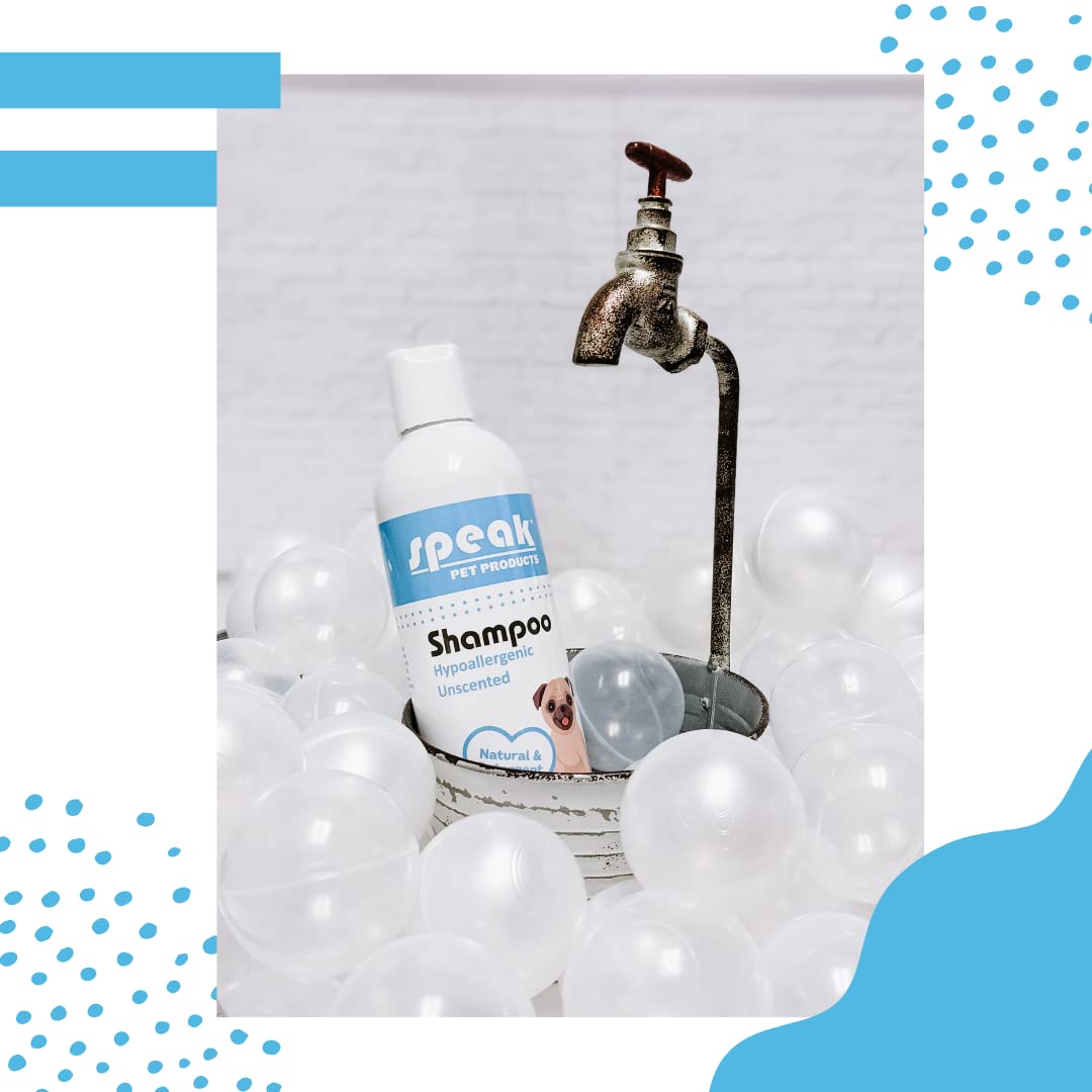 - Contains (1) 17 oz bottle of Speak Pet Products Detergent Free Hypoallergenic Unscented Shampoo