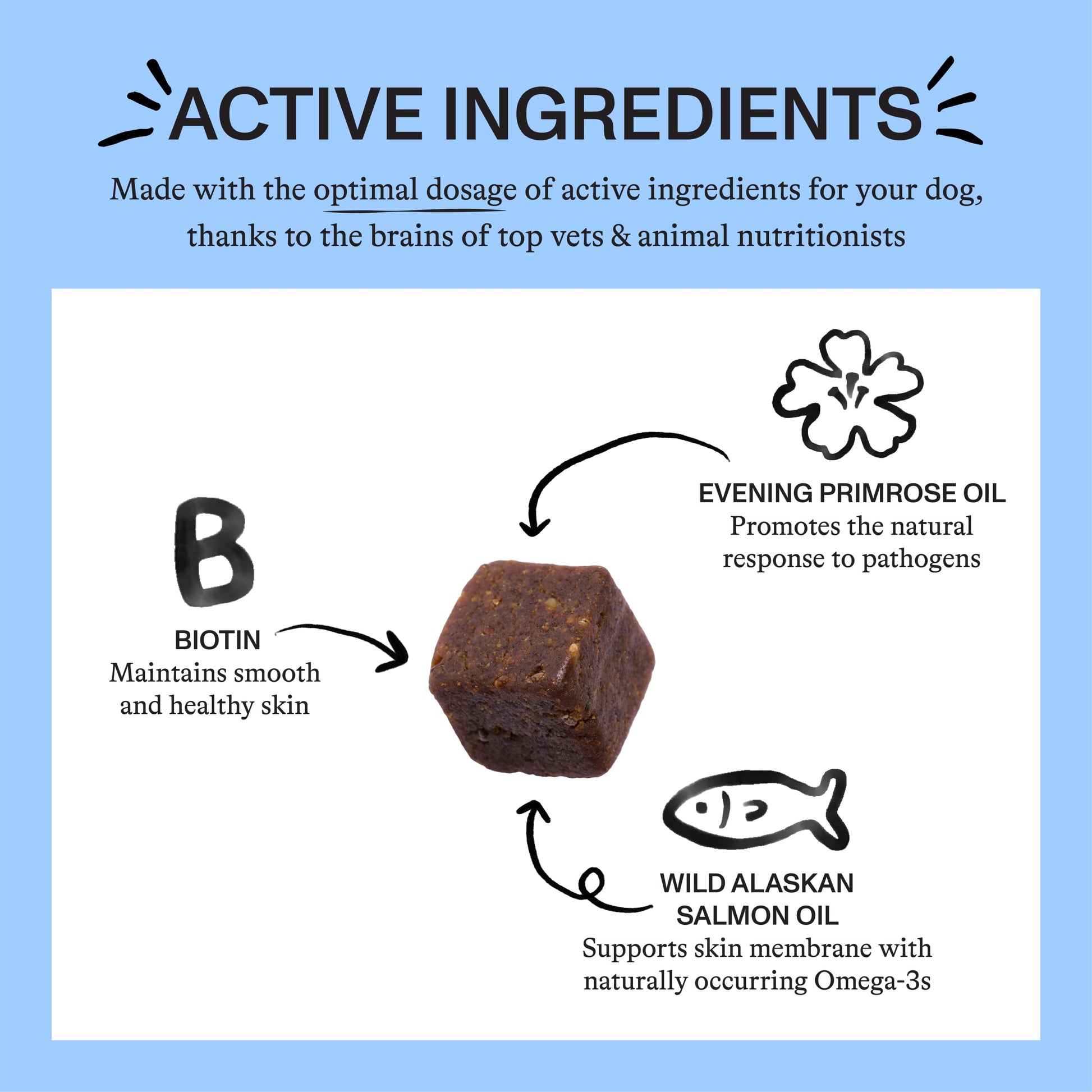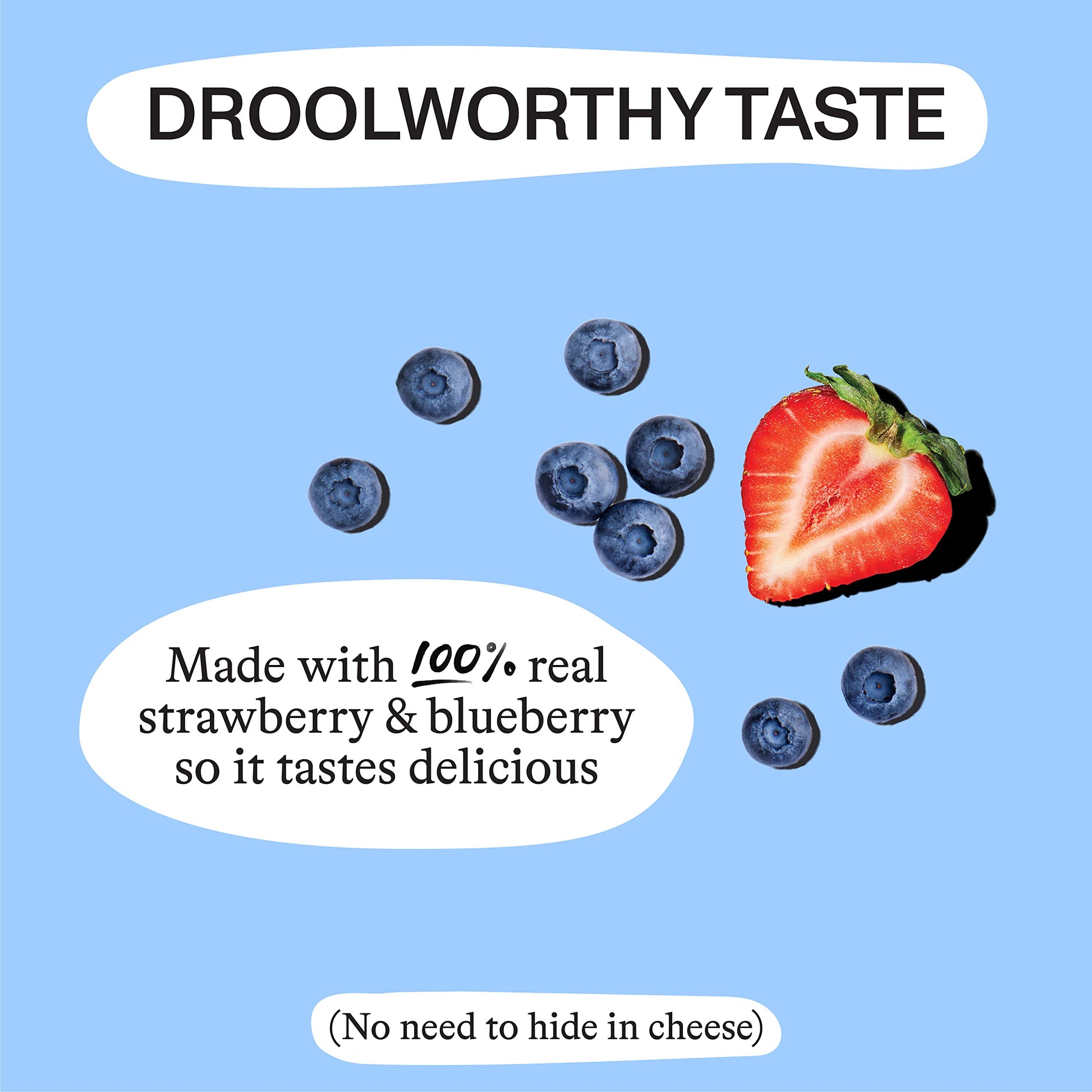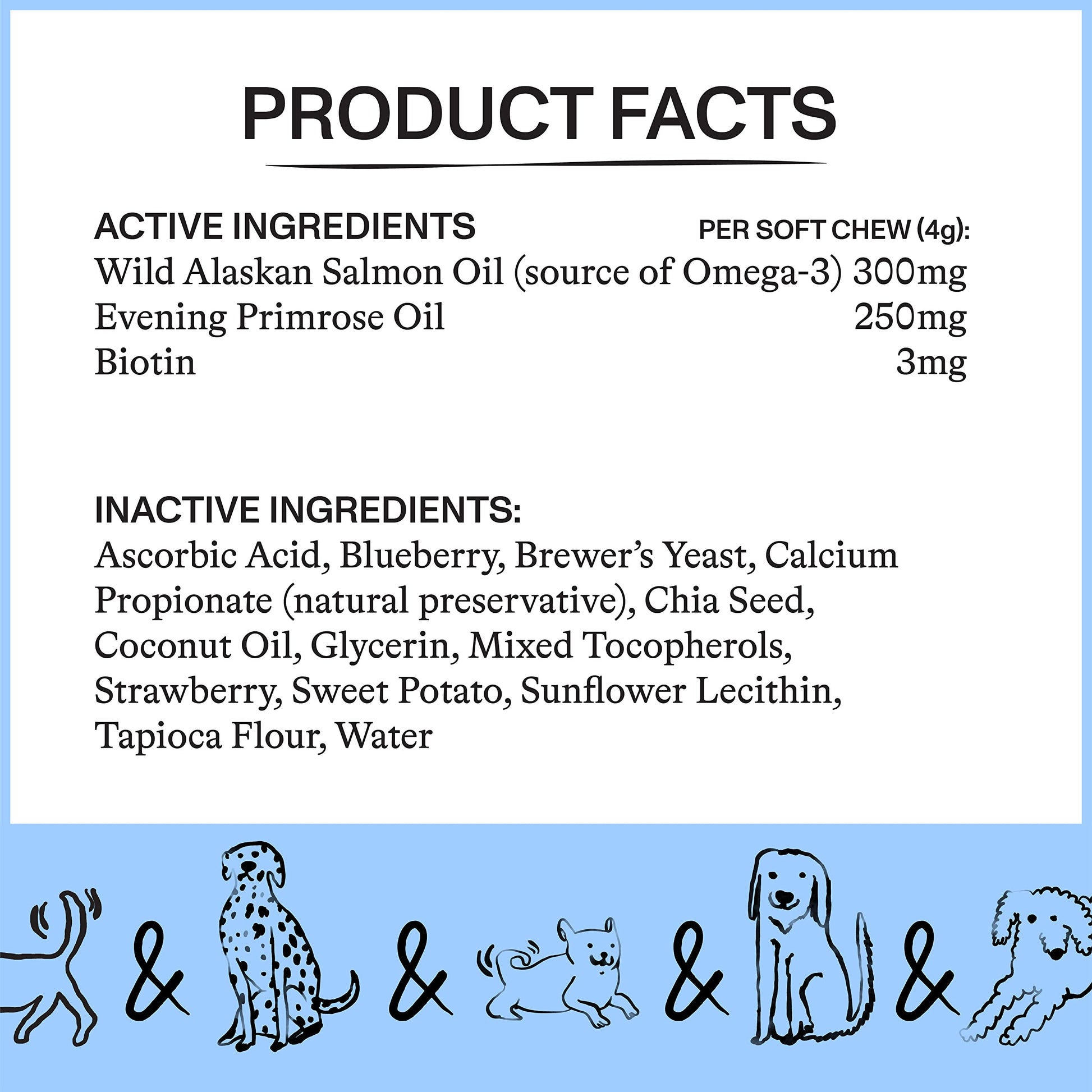 - DELICIOUS: Our dog skin and coat supplements are bursting with flavor from 100% real, whole blueberries and strawberries that your dog will love. No need to hide in cheese