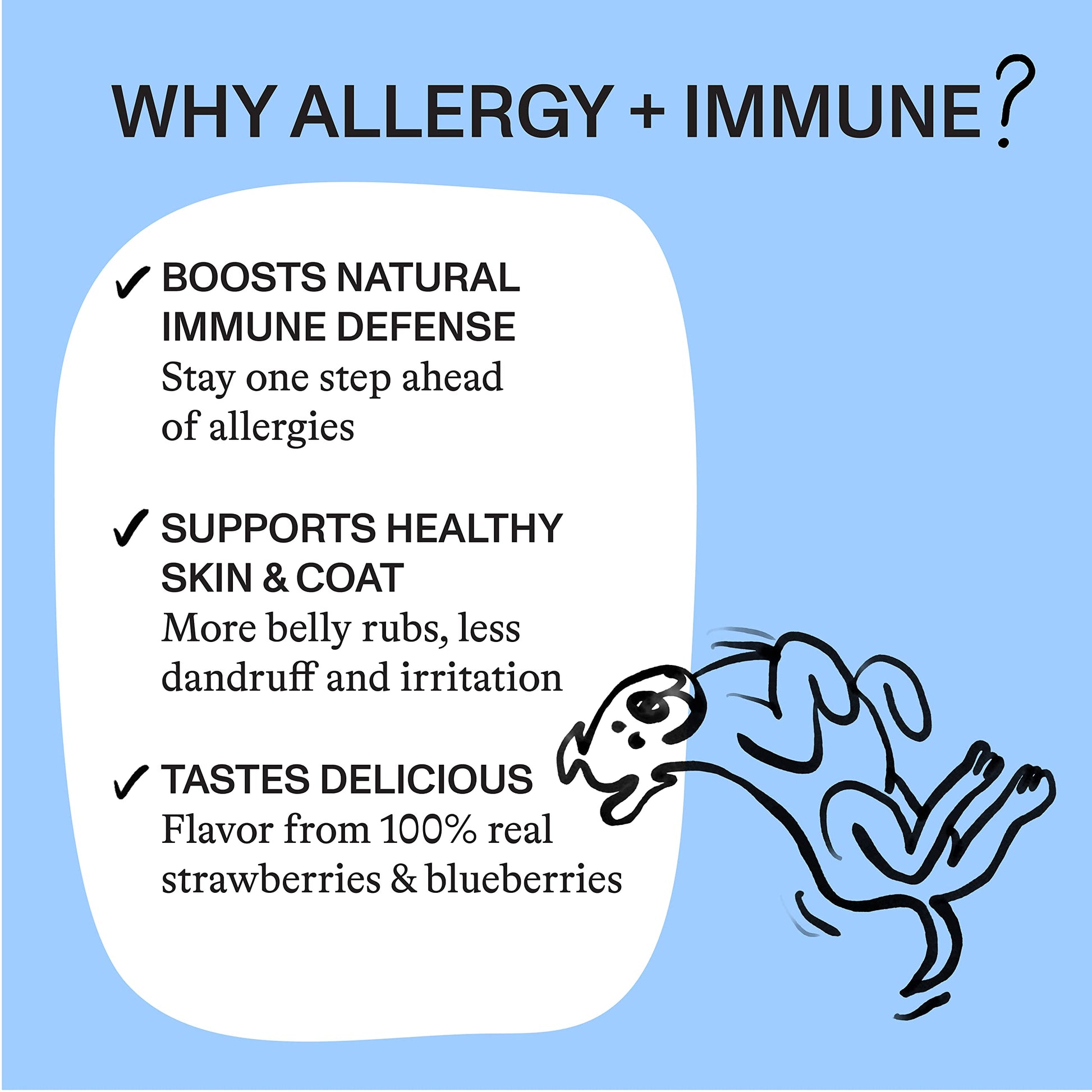 Spot & Tango Allergy + Immune Supplement for Dogs - Vet-Approved For Itchy Skin & Allergy Relief - Wild Alaskan Salmon Oil, Omega-3, Primrose Oil, Biotin - Real Strawberry & Blueberry Flavor, 56 Count
