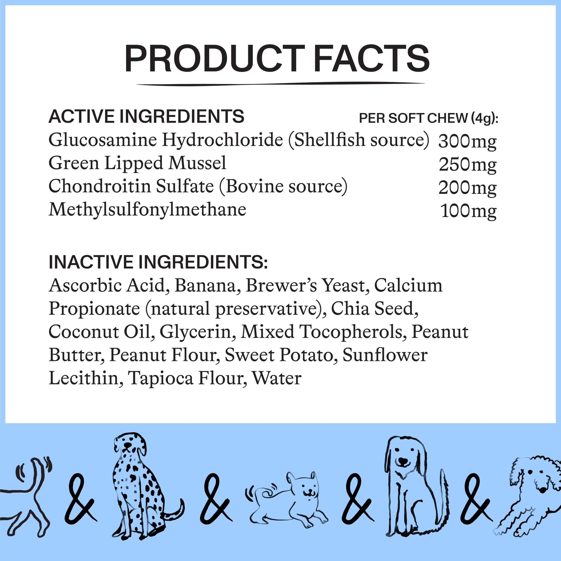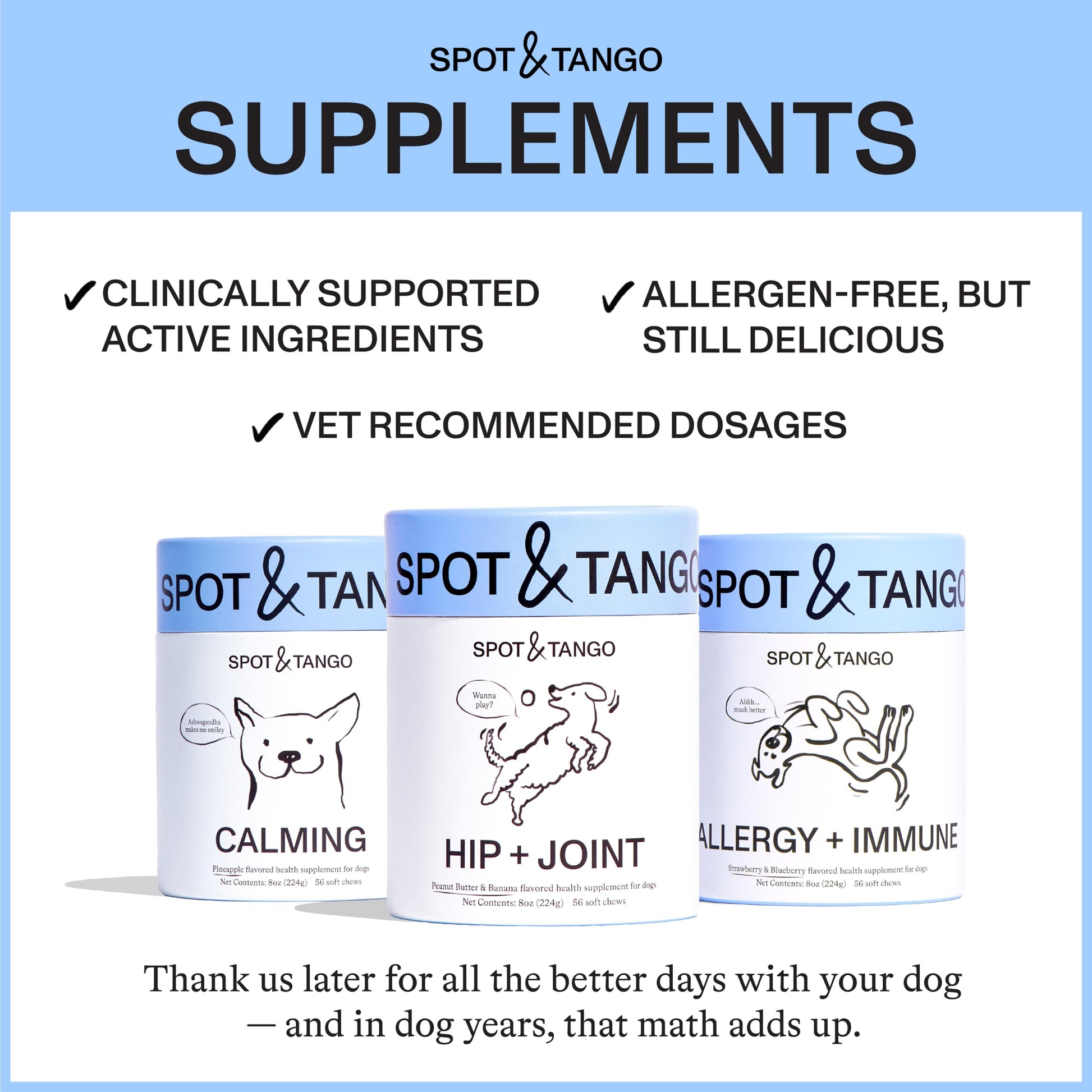 Spot & Tango Hip + Joint Supplement for Dogs - Vet-Approved For Mobility and Arthritis Support - Glucosamine, Chondroitin, Green Lipped Mussel, MSM - Flavor from Real Peanut Butter & Banana - 56 Count