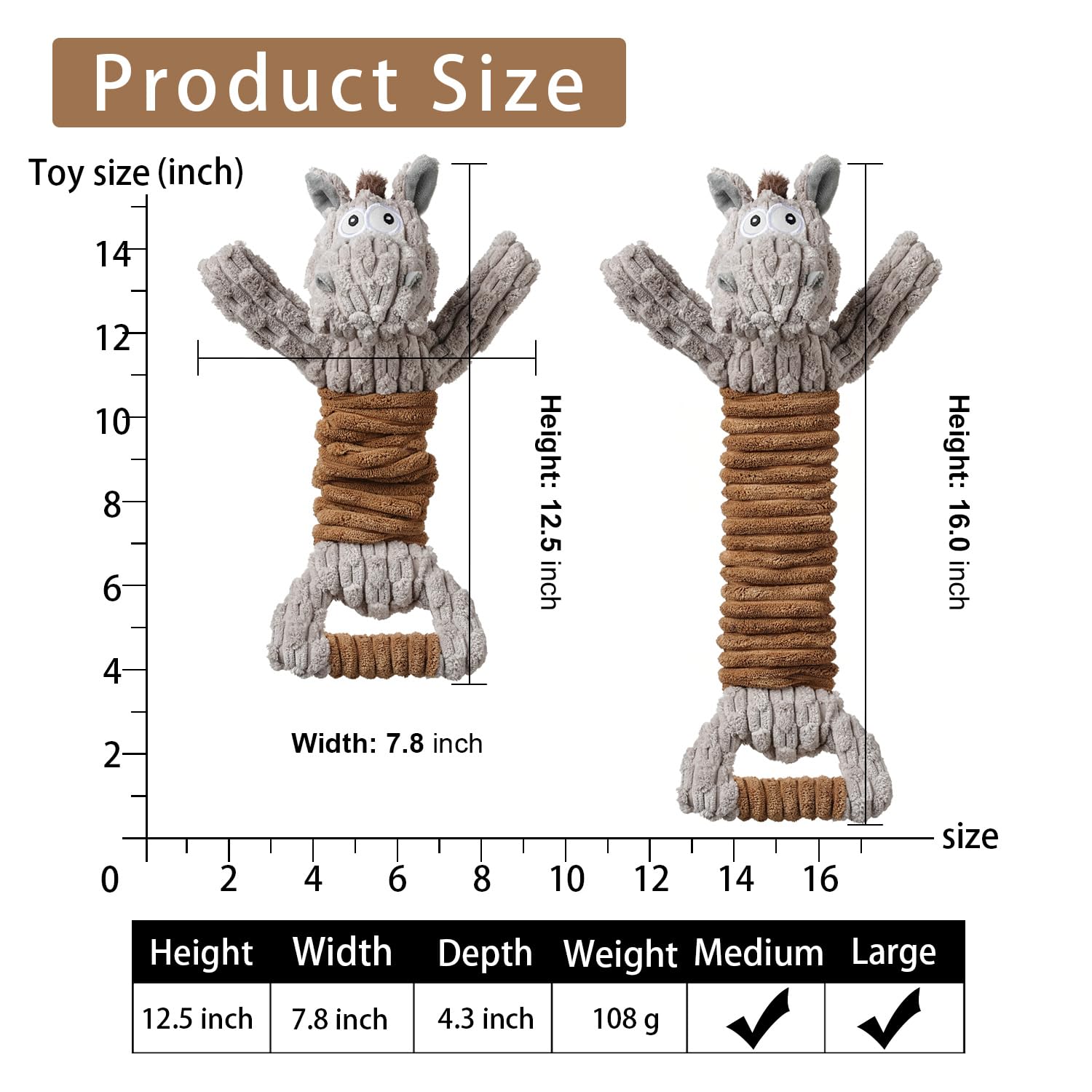 Squeaky Dog Toy, Durable Dog Toy Large Breed, Tug of War Dogs Interactive Toy, Stuffed Plush Puppy Toys with Crinkle Paper for Small, Middle, and Big Dogs(Tug of War Series, Donkey)