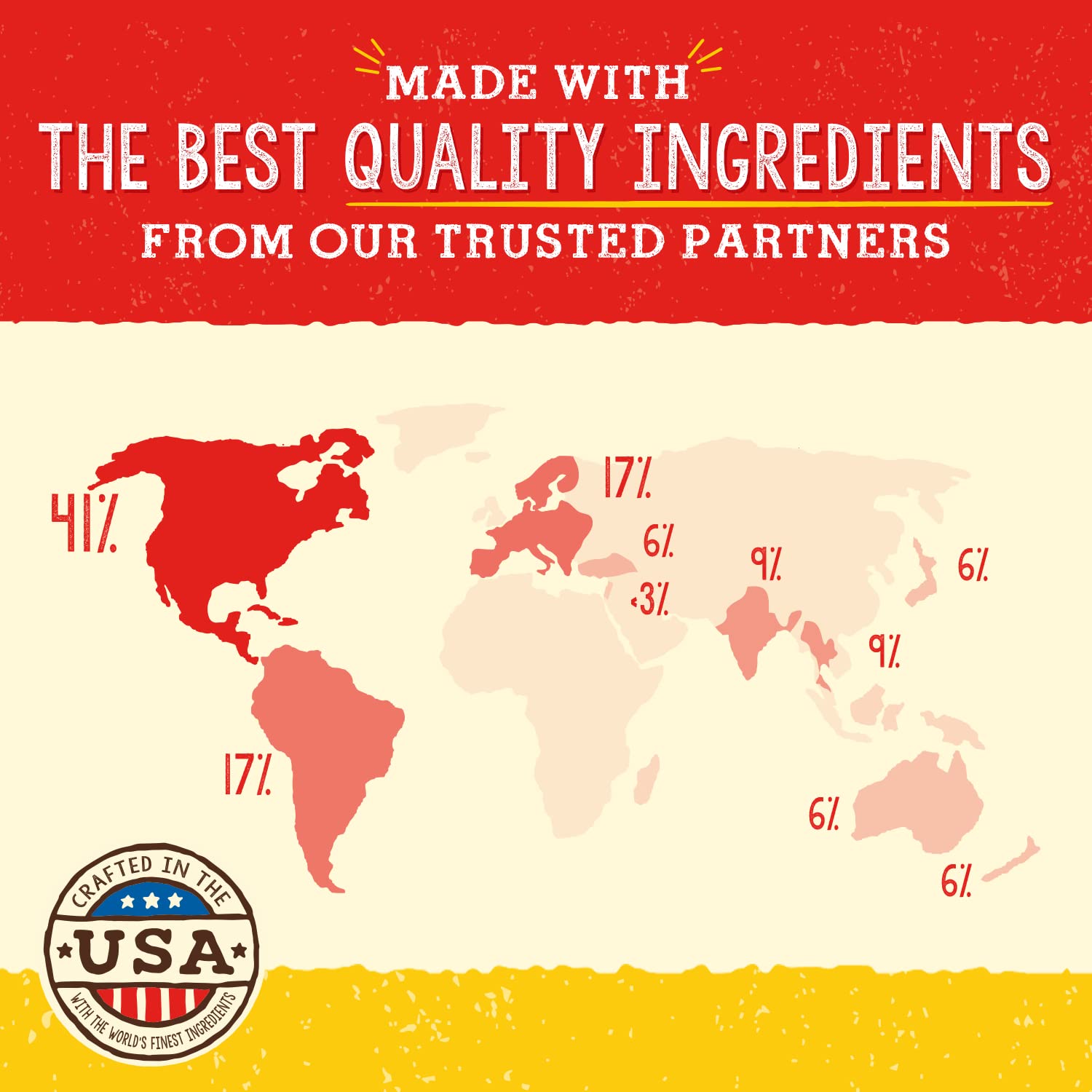 Made in the USA with globally sourced ingredients, our recipe contains no artificial preservatives, colors, flavors, hormones, or antibiotics. We use only organic fruits and vegetables to deliver complete, balanced nutrition for all life stages.