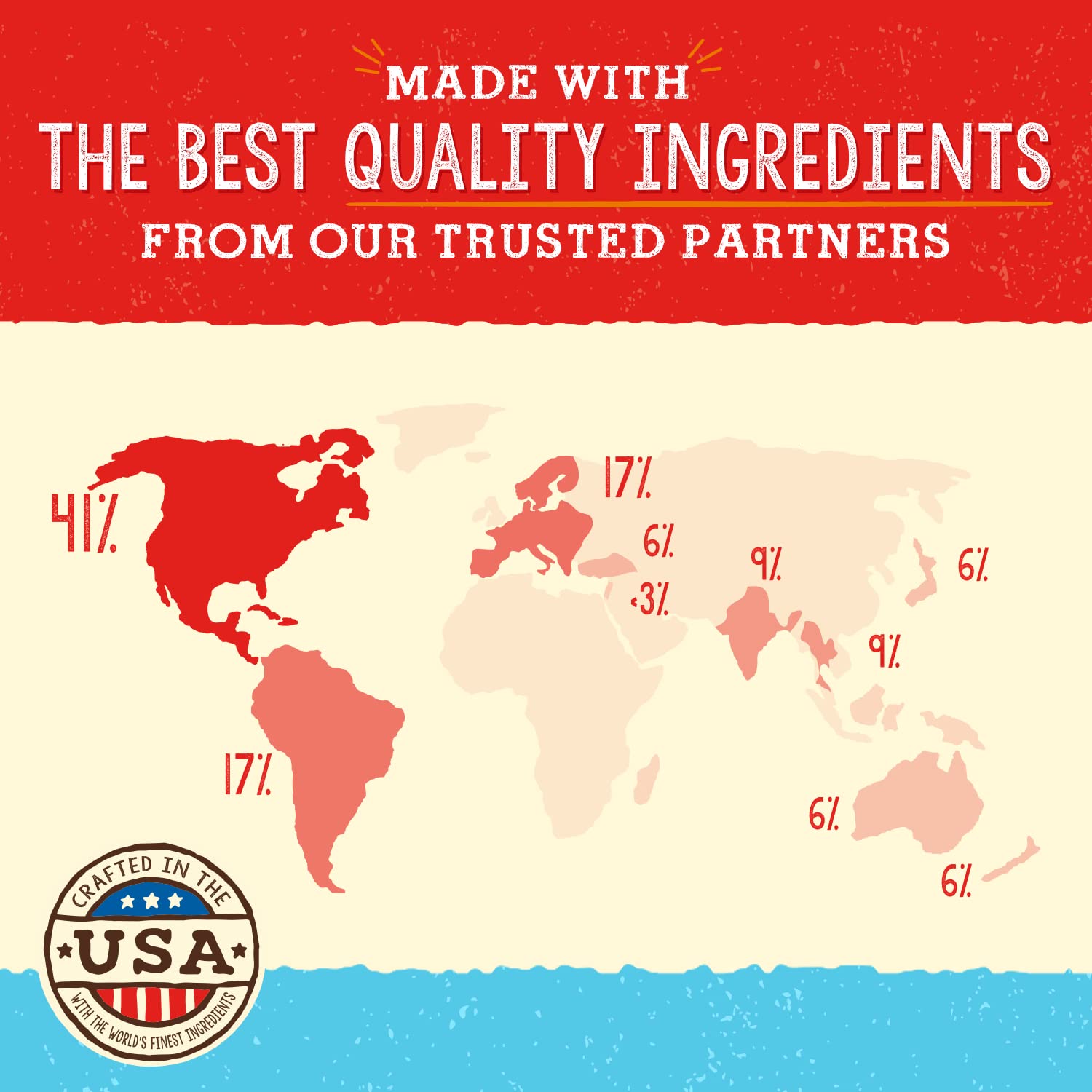 Made in the USA with globally sourced ingredients, our recipe contains no artificial preservatives, colors, flavors, hormones, or antibiotics. We use only organic fruits and vegetables to deliver complete, balanced nutrition for all life stages.
