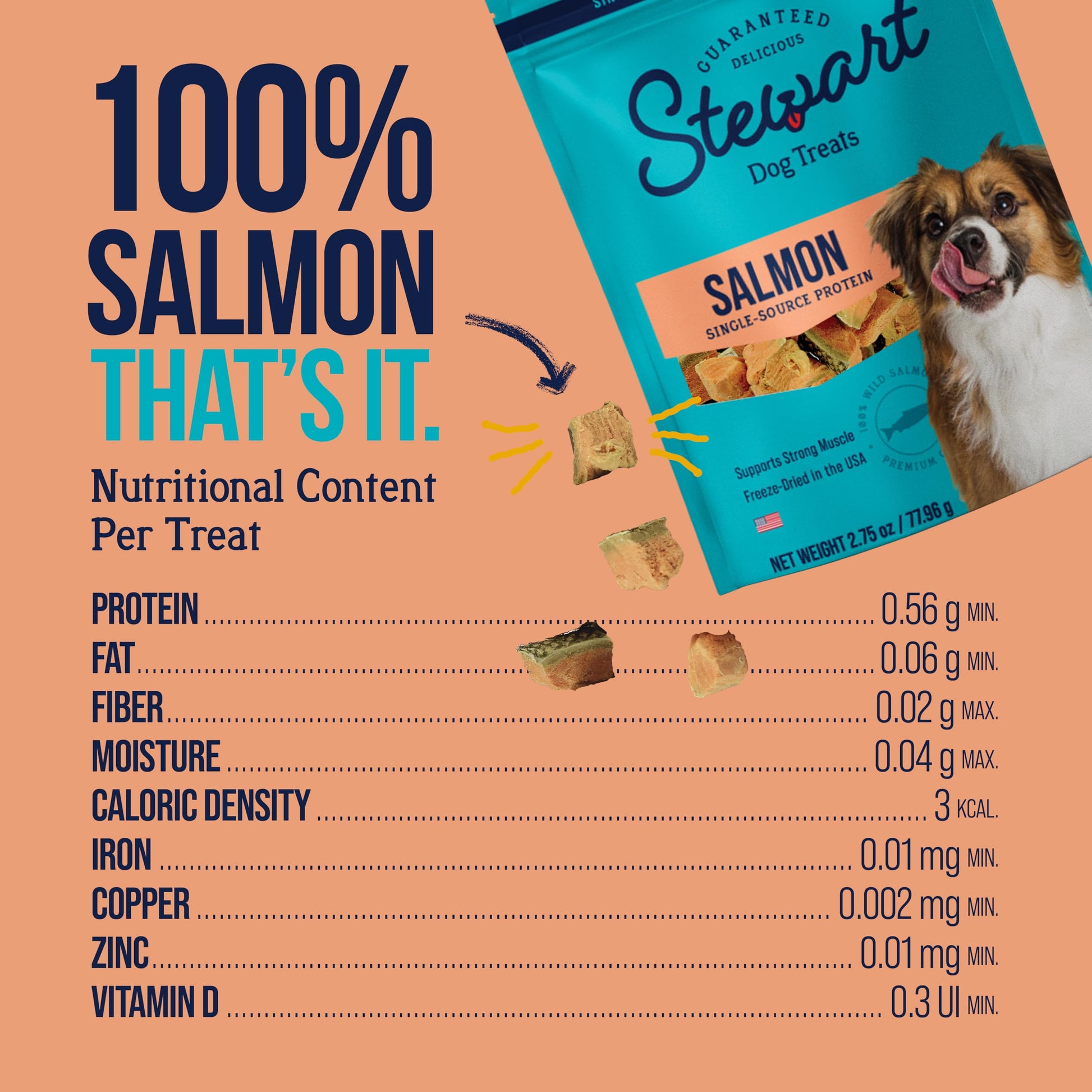 Stewart Single Ingredient Freeze Dried Raw Dog Treats, Wild Salmon, 2.75 Ounce, Approx. 55 Pieces per Resealable Pouch, Training Treats or Meal Topper, High Protein, Grain Free, Gluten Free