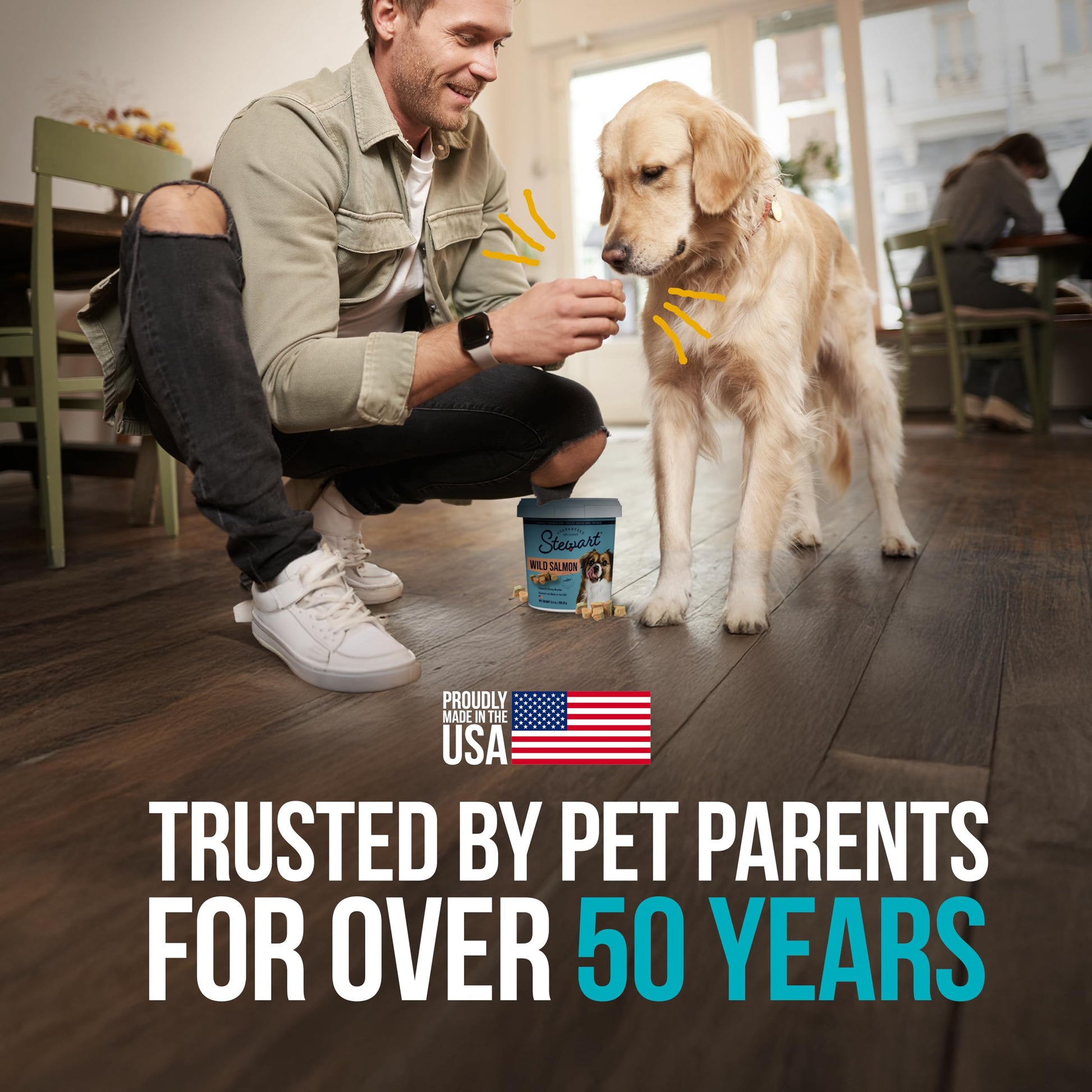 Details: A healthy dog is a happy dog, and a happy you! Stewart Freeze-Dried Salmon Dog Treats are made with one simple ingredient: 100% Salmon. Our single ingredient treats are grain-free and gluten-free and never enhanced with artificial flavoring or fillers like corn and soy, meaning you’ll be feeding your best friend the prime quality they deserve. These natural dog treats are great for training, dog enrichment toys, play time, or rewarding a job well done. Packaged in a resealable tub to keep them fresh, these yummy dog treats are also perfect to put inside fun puppy chew toys for teething or dog toys for aggressive chewers. Stewart Freeze Dried Dog Treat morsels are also the perfect dog food toppers to add when you reach the end of the tub, meaning our treats are multiuse and great for more than training your pets. These delicious treats are lightweight and easy to store with a long shelf life, made in the USA, and crafted with care in small batches to ensure the highest quality. Our single ingredient dog snacks are designed for dogs of all sizes and ages – we love them all! Choose Stewart – because it’s real food, and nothing else.