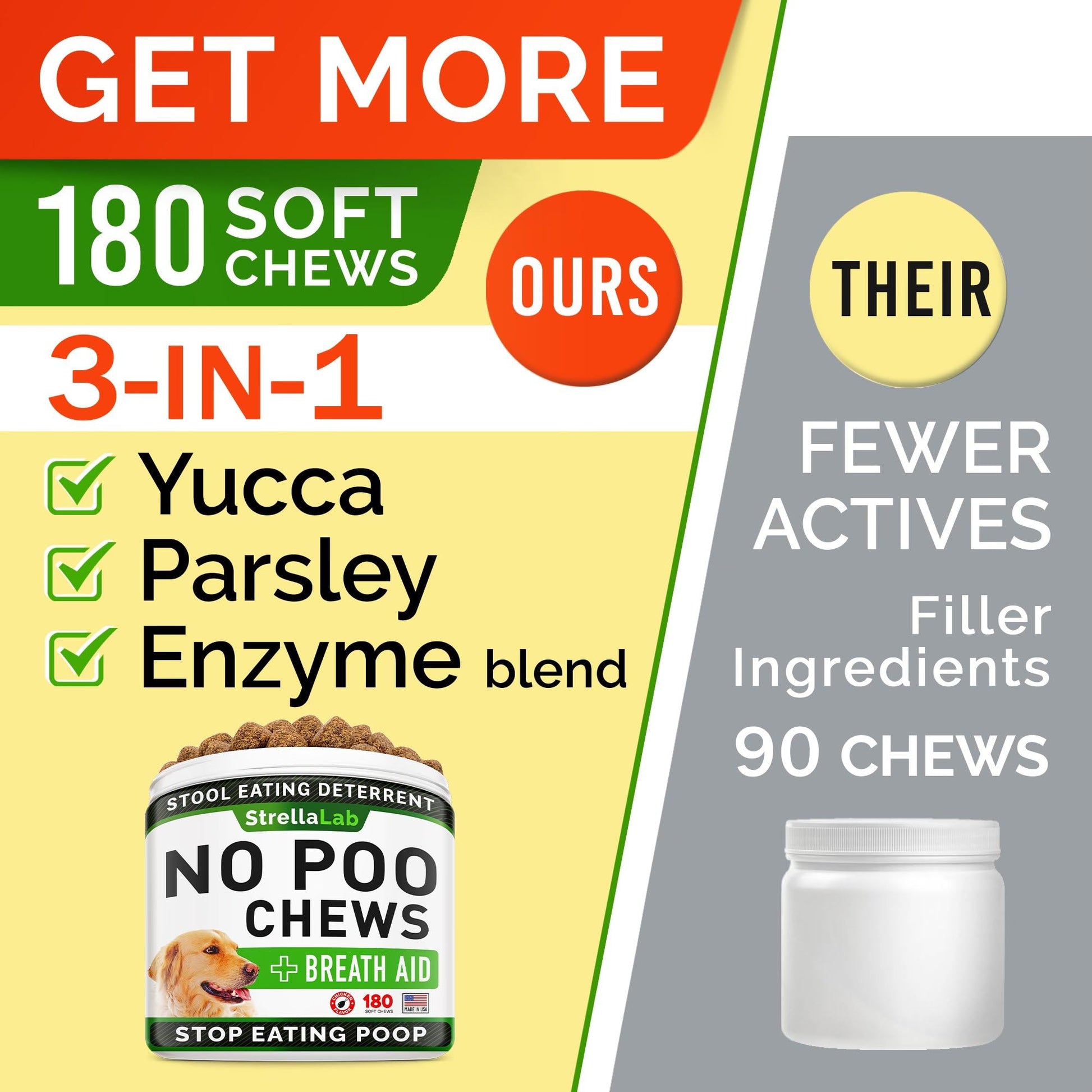 • Ain't Chewing That Poo - these chewables act as stool eating deterrent (coprophagia treatment), natural breath freshener, and digestion support treats for dogs. Suitable for dogs any breed and size.