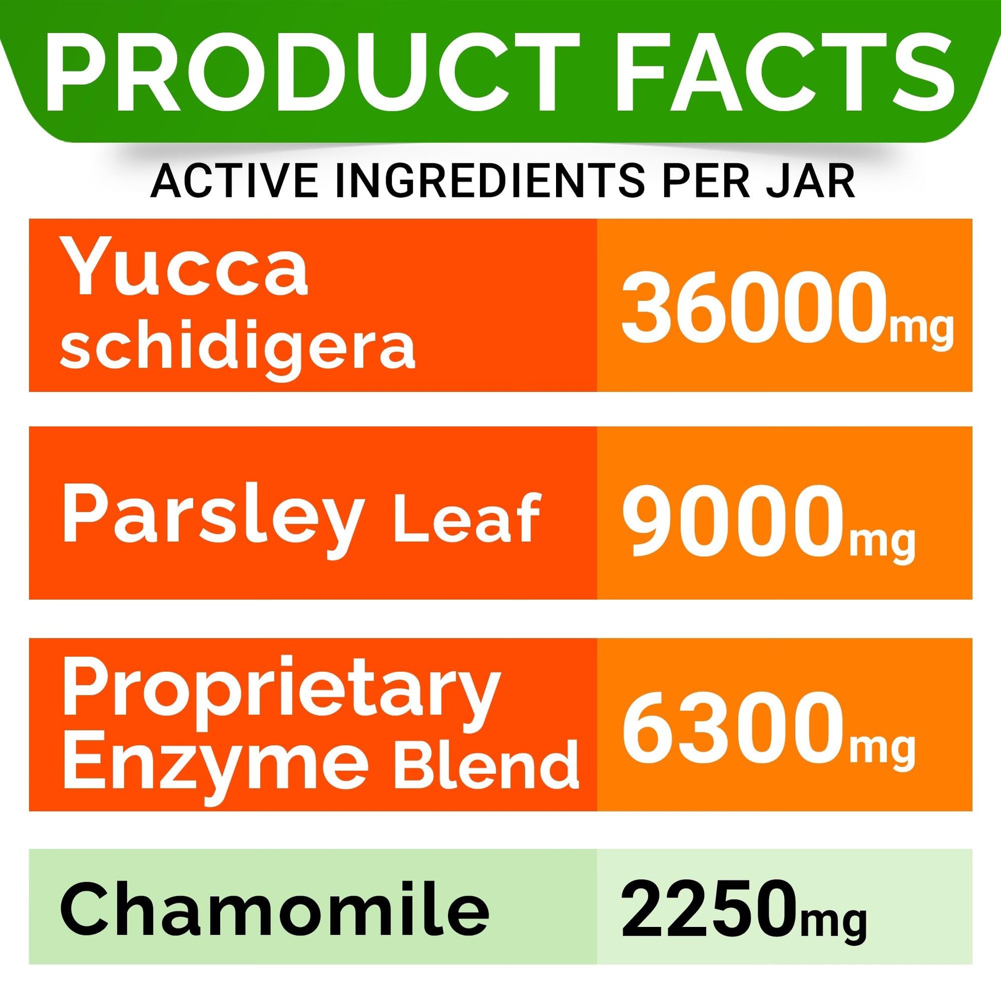 • Support Healthy Tummy - our formula takes advantage of digestive enzymes, yucca and chamomile to support intestinal microbiota, ensuring proper digestion for sensitive stomach.